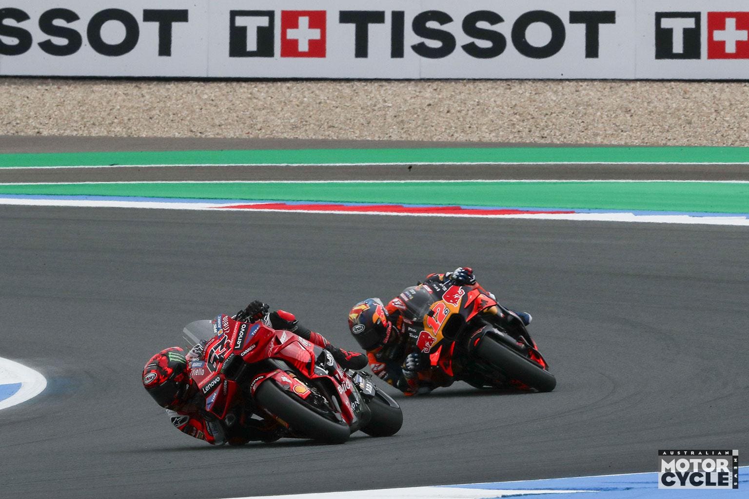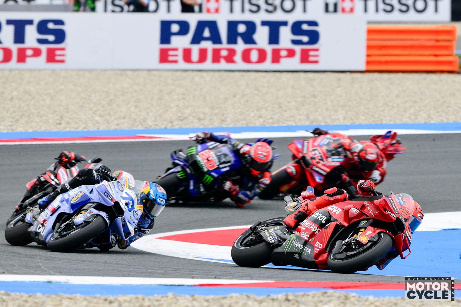 Alex looked the more agile through the rapid right-handers of Turns 10 and 11 on Lap 4, but Marc responded with trademark tenacity, laying down the fastest lap of the race as he extended the gap again through Ramshoek. Fabio Di Giannantonio was coming into contention, stringing together best sectors in his chase of the factory Ducatis. He and Bagnaia swapped positions repeatedly as Diggia edged ahead at the Geert Timmer Chicane, further frustrating the factory rider’s afternoon.