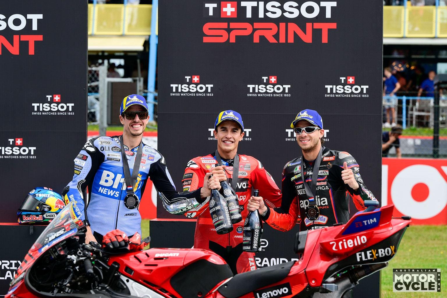 Bezzecchi brought it home with a standout ride for third, ahead of the two factory Ducatis of Di Giannantonio in fourth and Bagnaia in fifth. Maverick Viñales led KTM’s charge in sixth, ahead of Pedro Acosta. Fermín Aldeguer claimed eighth, while Franco Morbidelli and Brad Binder rounded out the top ten.