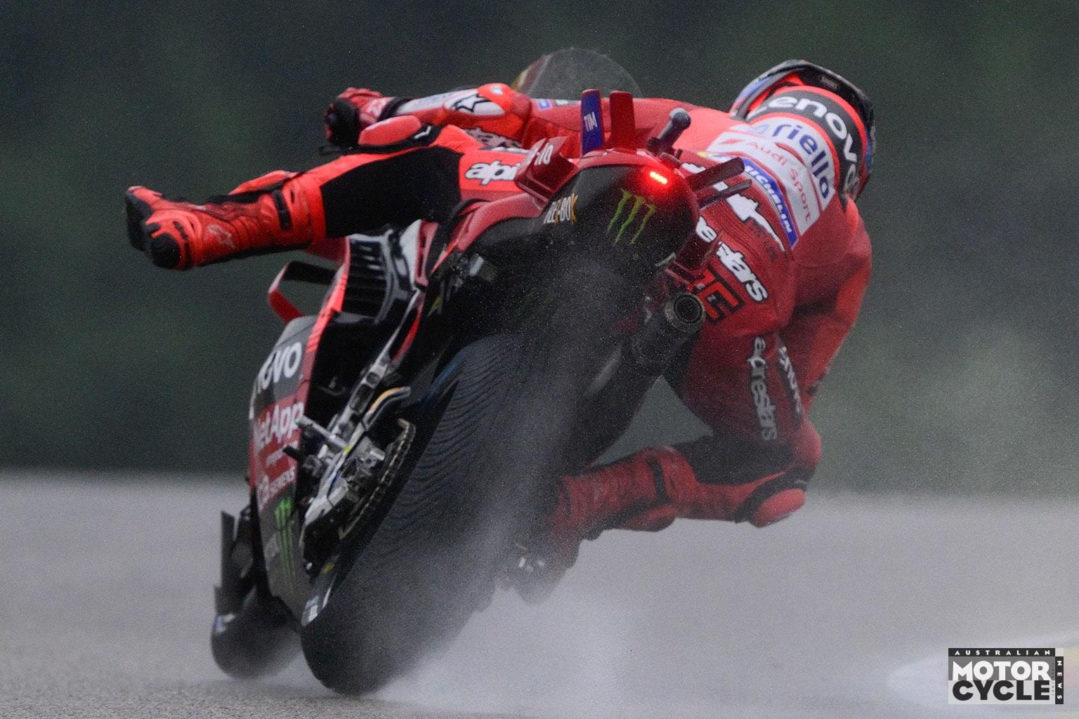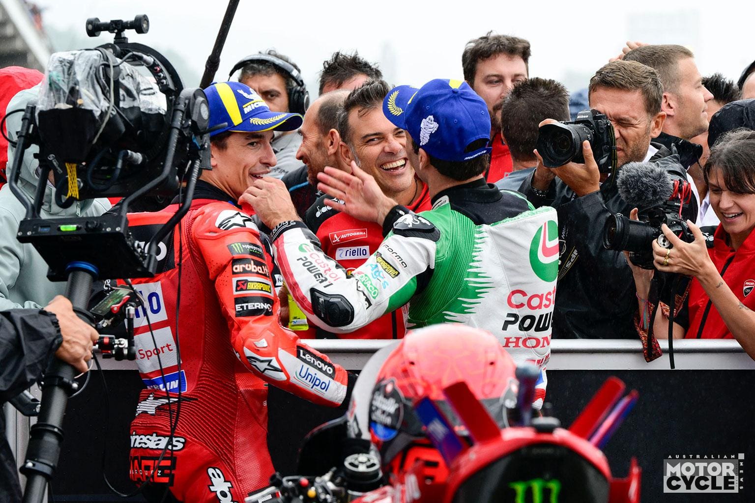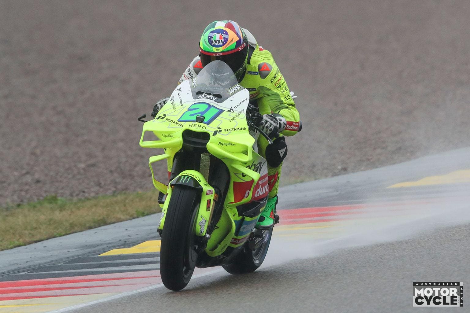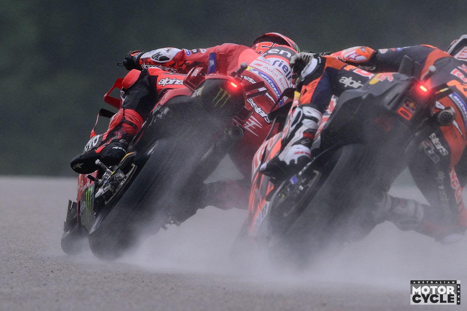 It was yet another standout performance from Marc Márquez, who once again danced on the very edge of adhesion in the sodden conditions. Zarco put in another heroic effort for Honda, going from Q1 to the second row, but the Ducati man looks tough to beat whatever the conditions — particularly as Diggia, the only man who seemed able to match Marc’s race pace in practice, is seven grid slots back.
