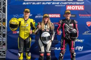 2025-ASBK-Rnd1-Phillip-Island-RbMotoLens-RML_1710-R1-Race-Podium-SS300-Tara-Morrison-Jordan-Simpson-Scott-Nicholson