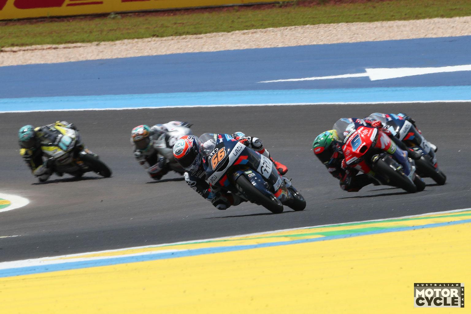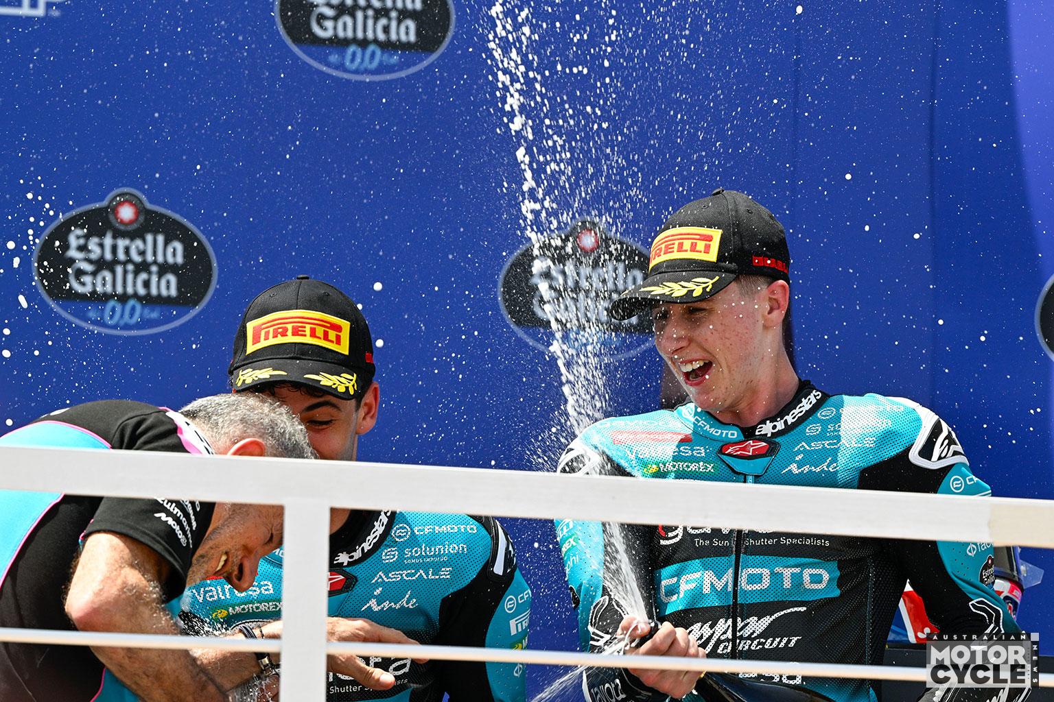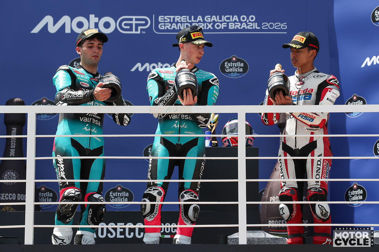 Behind the Aspar pair, Pratama’s third place was a breakthrough for both rider and nation, giving Indonesia its first ever Grand Prix podium in any class. He held off Carpe and Pini, with rookie Rico Salmela taking an impressive sixth. Perrone, Fernandez, Casey O’Gorman and Hakim Danish completed the top 10 in a race that flipped the title picture and left plenty of riders, Kelso included, feeling they had more to give without the interruptions.