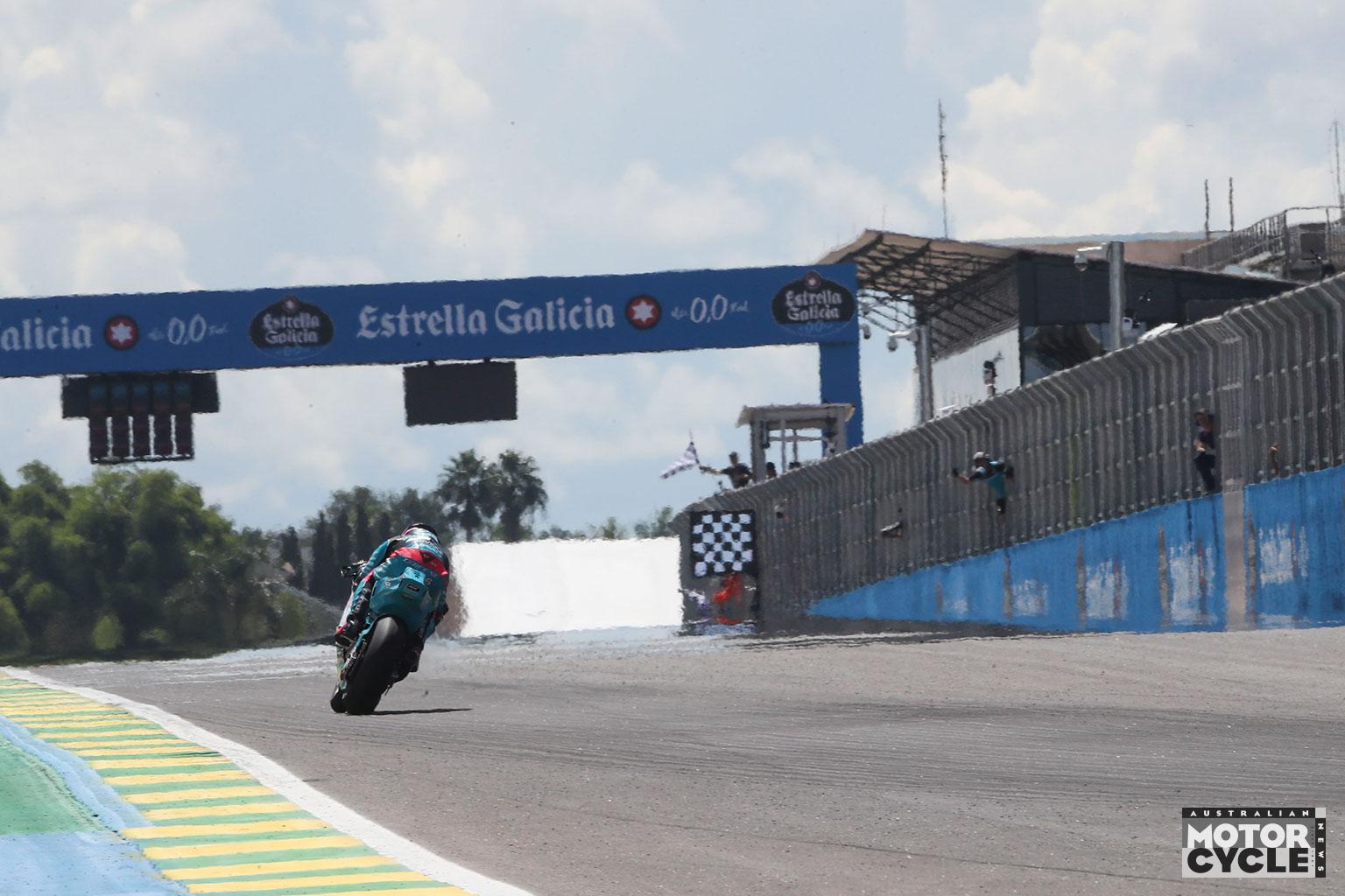 Behind them, Agius faced a very different race. In the hottest conditions of the weekend, the New South Welshman made a solid getaway, picking off riders immediately and moving past Jose Antonio Rueda and Jorge Navarro at Turn 1 to climb to 26th. From there it became a long, methodical recovery in a field that quickly stretched out, limiting chances to gain big chunks of time.