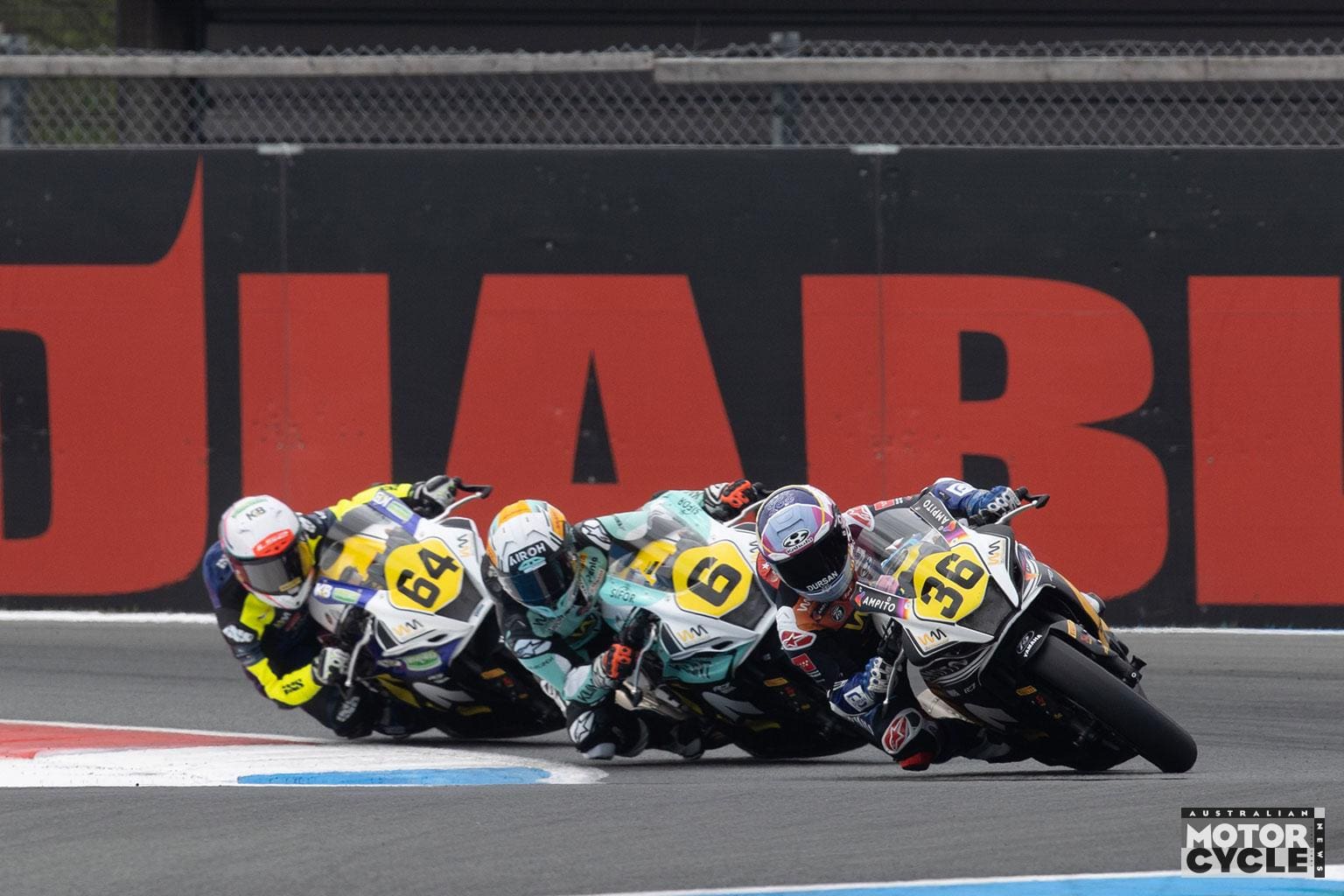 After Avalon Lewis (Carl Cox Motorsports) crashed out of contention Sara Sanchez (Terra & Vita GRT Yamaha WorldWCR Team) was a close third.