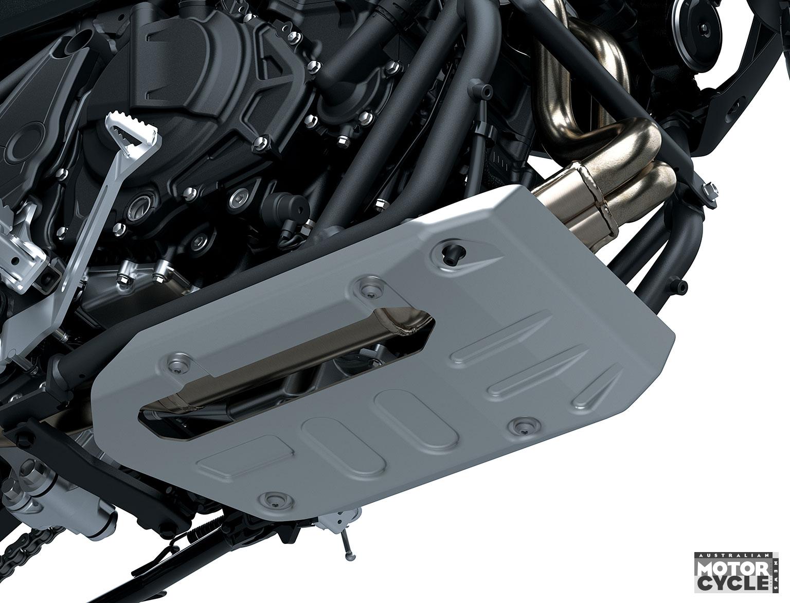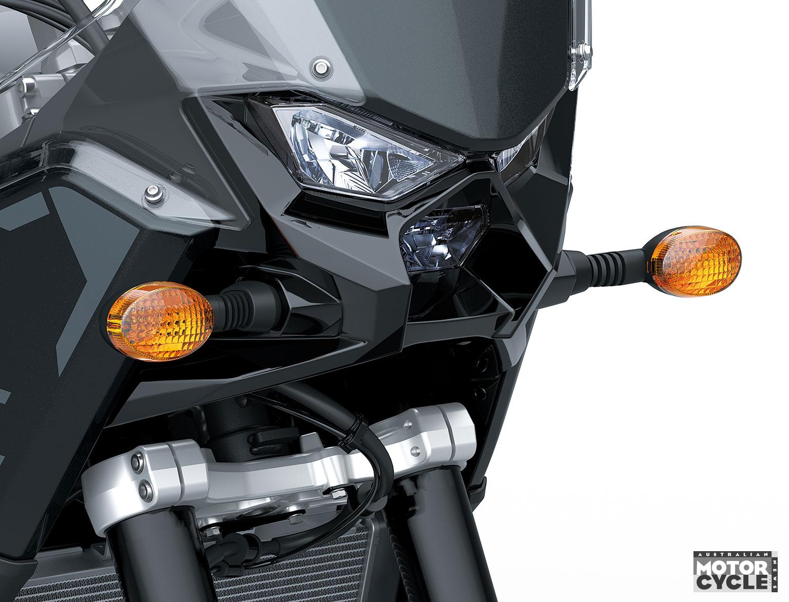 That unchanged engine gains an extra O2 sensor in the exhaust to meet Euro5+ emissions rules, and Kawasaki claims the radiator fan cover is a patented design that pushes hot air downwards and away from the rider. Subtle tweaks include revisions to the braking system, with new 300mm front discs – now conventional rather than the previous petal-style design – and a new ABS control unit from Continental.