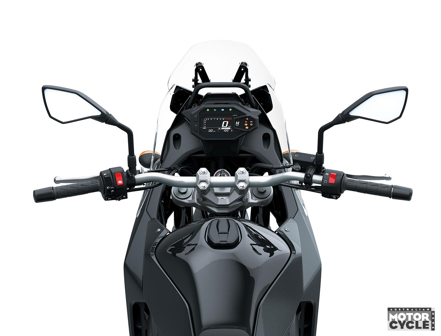 Kawasaki says the slim fuel tank and sleek side covers are intended to make standing easier, with ground clearance and linear power aimed at mixed-terrain use. There’s also an SE model that adds a larger windshield, hand guards, a bigger skid plate, LED lighting, and TFT instrumentation.