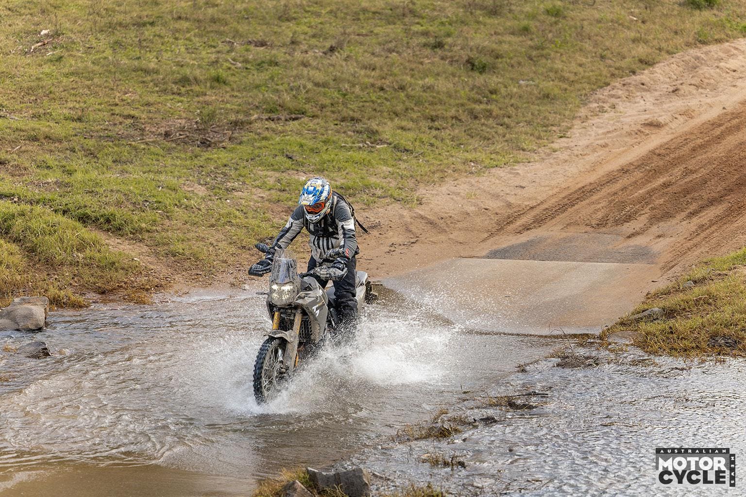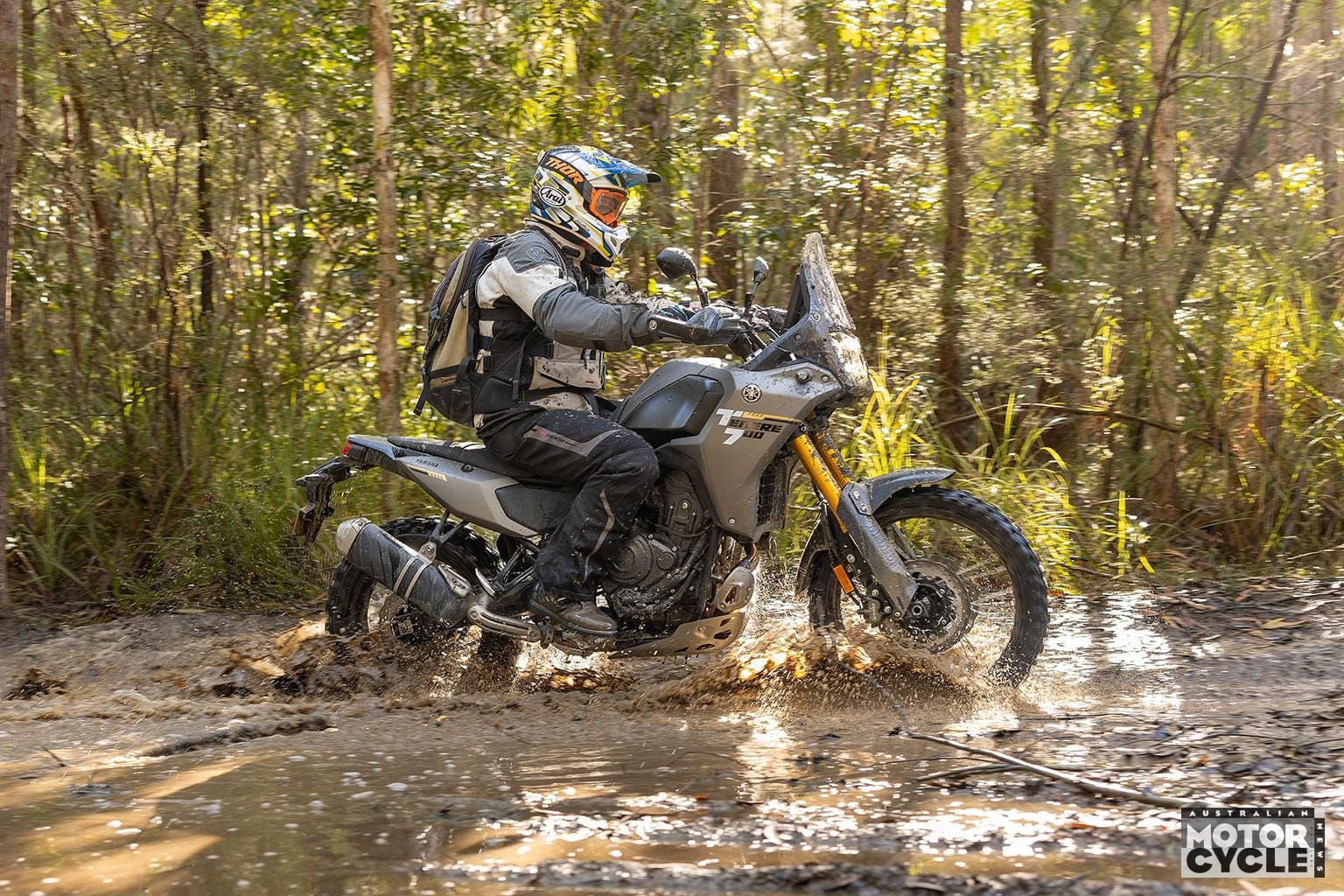 There are two modes programmed into the fuelling system, Sport and Explorer, with the latter delivering a slightly softer feel to the power. In fact, some riders on the test actually preferred this mode. The T7 also features traction control that can turned off, allowing for more fun on the dirt.