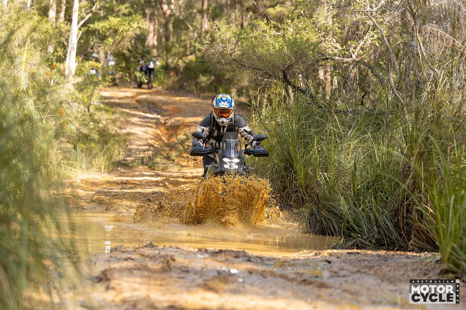 They are a great bunch of blokes and led us over a variety of terrain specifically mapped out to give us a taste of what the bike is capable of. All three colour variants were on hand to trial – Icon Blue, Sky Blue and Frozen Titanium. I picked the Frozen Titanium, which I thought looked great. All bikes were fitted with Dunlop 606 tyres as our ride was going to 80 per cent dirt. Apart from that they were stock standard.