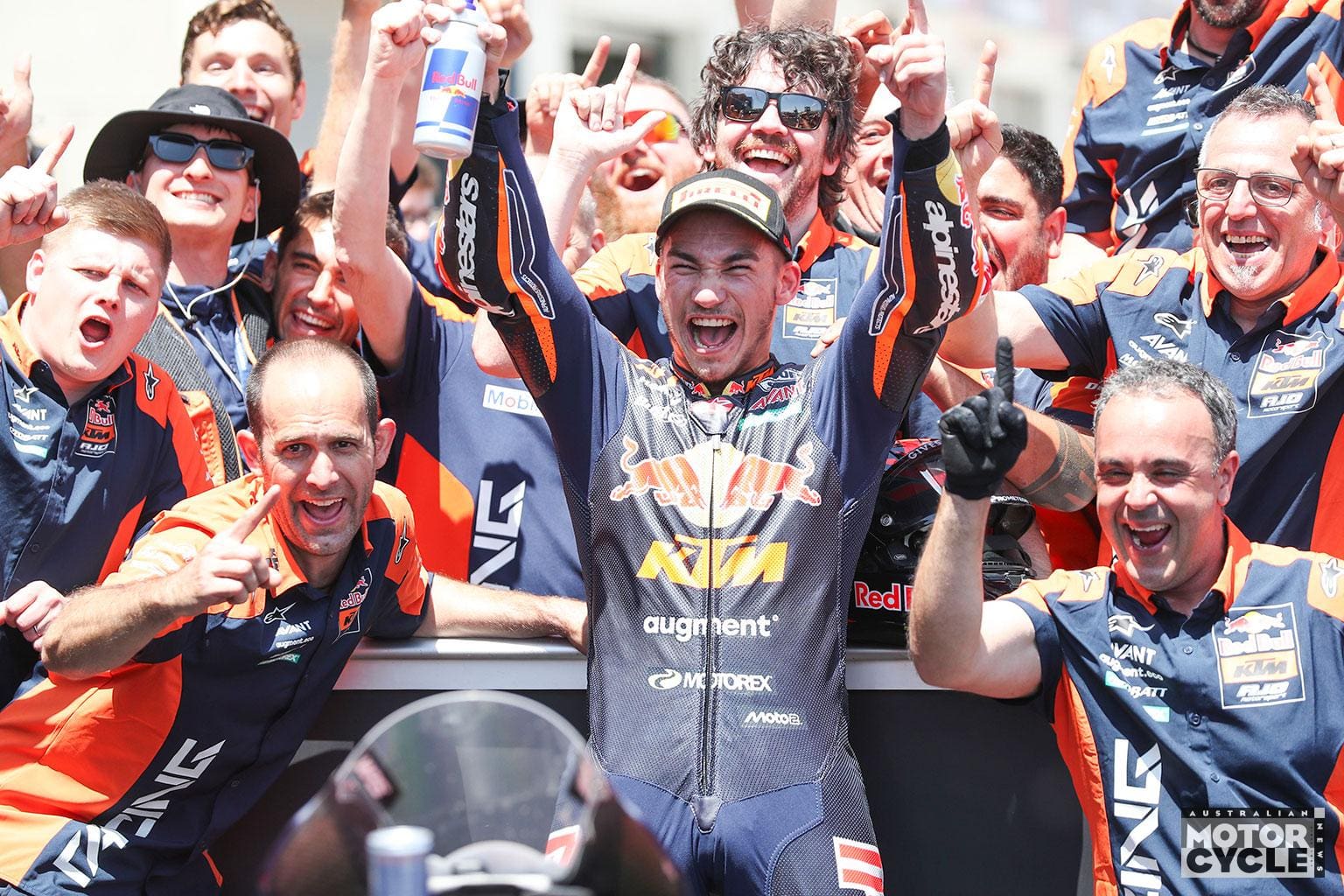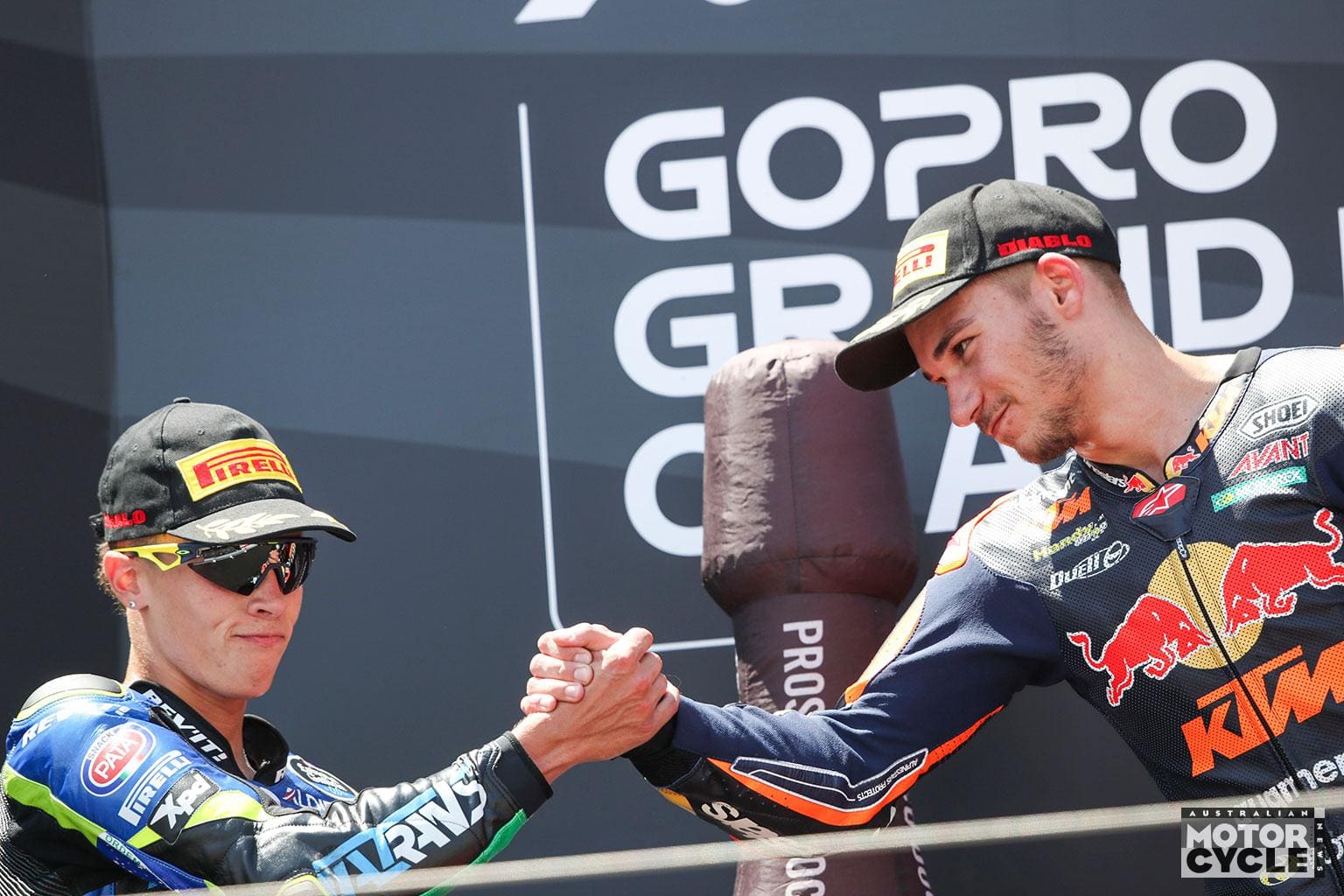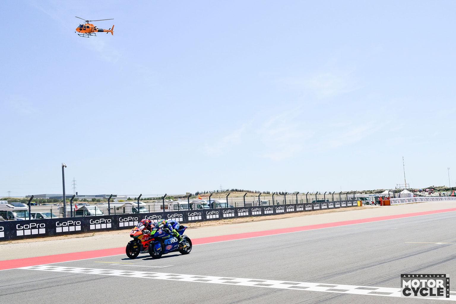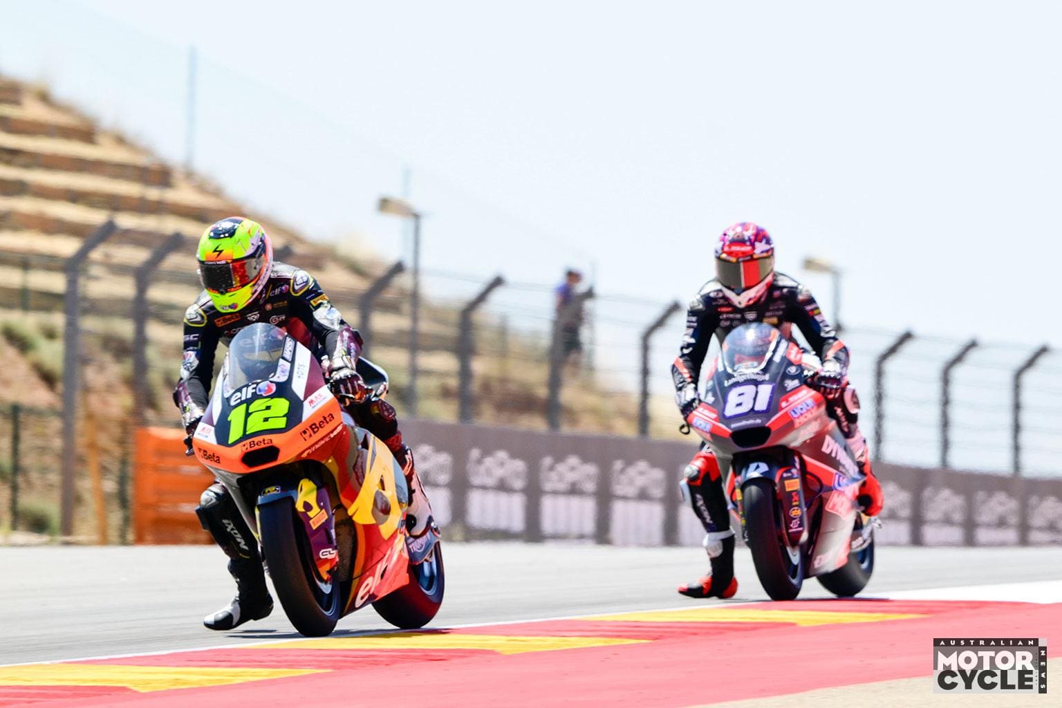 Everything came down to the final lap. Moreira clocked the fastest lap and pounced on Öncü at Turn 5, making what looked like the race-winning move. Both riders spun their rear tyres exiting Turn 12, as Moreira frantically tried to build a gap as they approached the final corner where Öncü’s was super strong. Moreira led into the final turn, but Oncu let his KTM drift wide, squaring off the turn on exit and blasting past Moreira on the run to the finish to win by the narrowest margin in Moto2 history.