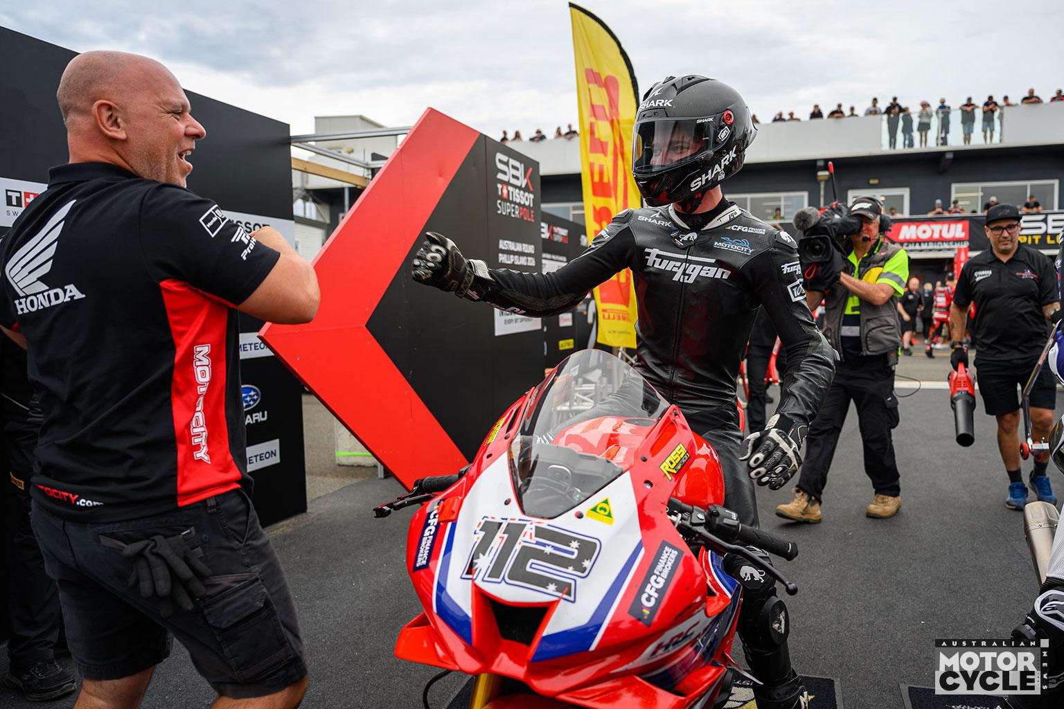 The wings are obviously adding to this stability, but so is the carbon fire chassis, which now has more flex and feel than before. Then there is the brail-like feel from the Öhlins pressurised forks and the grip and larger contact patch generated by the 125-section front Pirelli slick. It’s like the perfect storm, one so potent it’s hard to put into words.