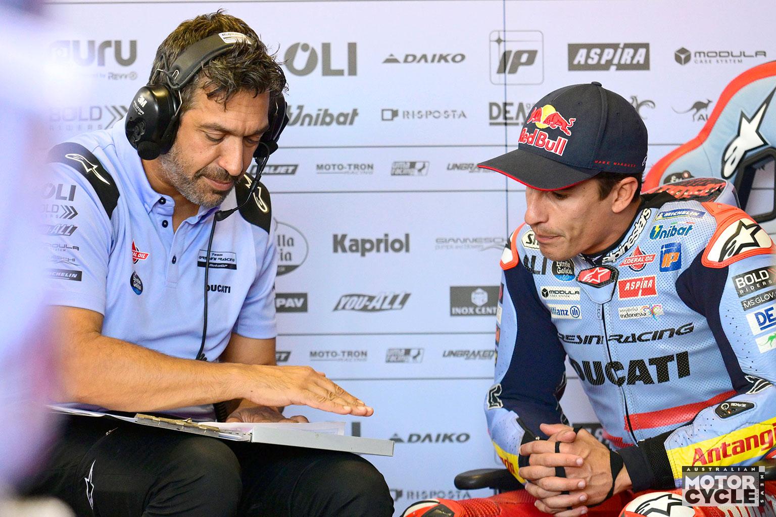 Frankie Carchedi – crew chief for Marc Marquez in 2024 – told me that he once even had the entire swingarm replaced for Marc: “I was probably the first crew chief to have a different, laterally more flexible swingarm installed for the wet conditions, and with success! But that made the conversion from dry to wet very long for the mechanics, at 45 minutes.”