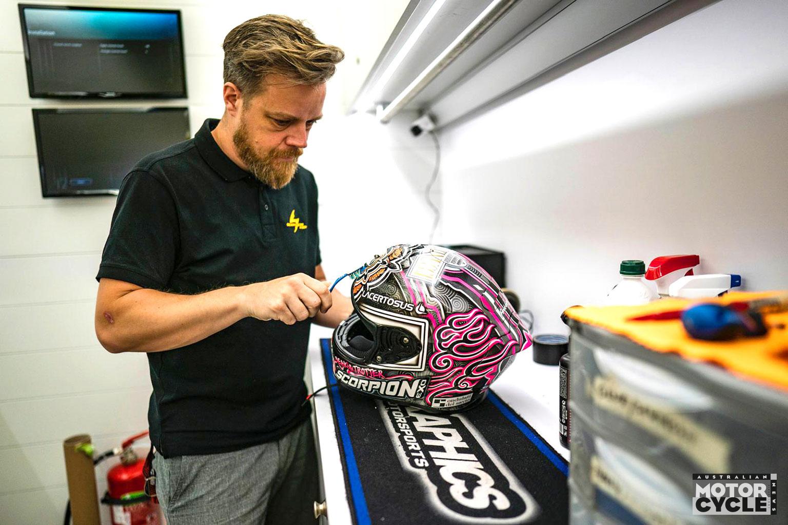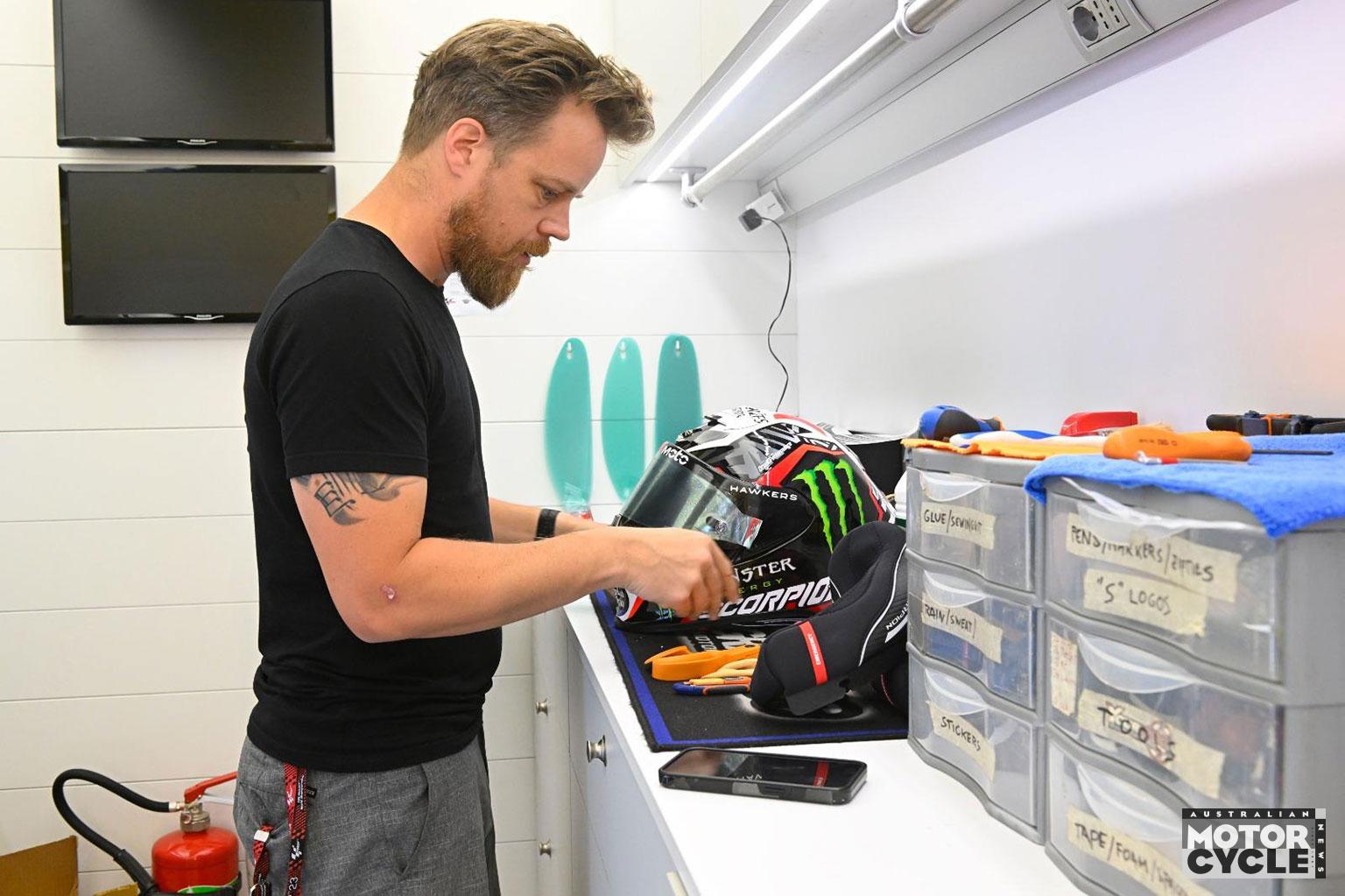 Jarno Bijma knows all about this. He’s responsible for the supply and support of Scorpion helmets (including for Alex Rins) in the MotoGP paddock.