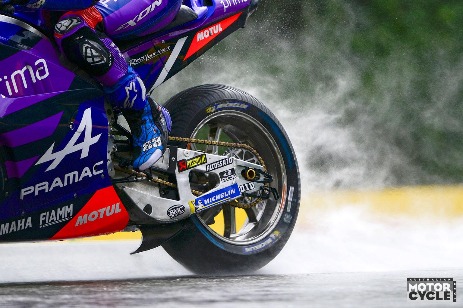 Rain doesn’t just test the skill of the riders. MotoGP expert Peter Bom shows how every bike is transformed to survive – and thrive – on a slippery track