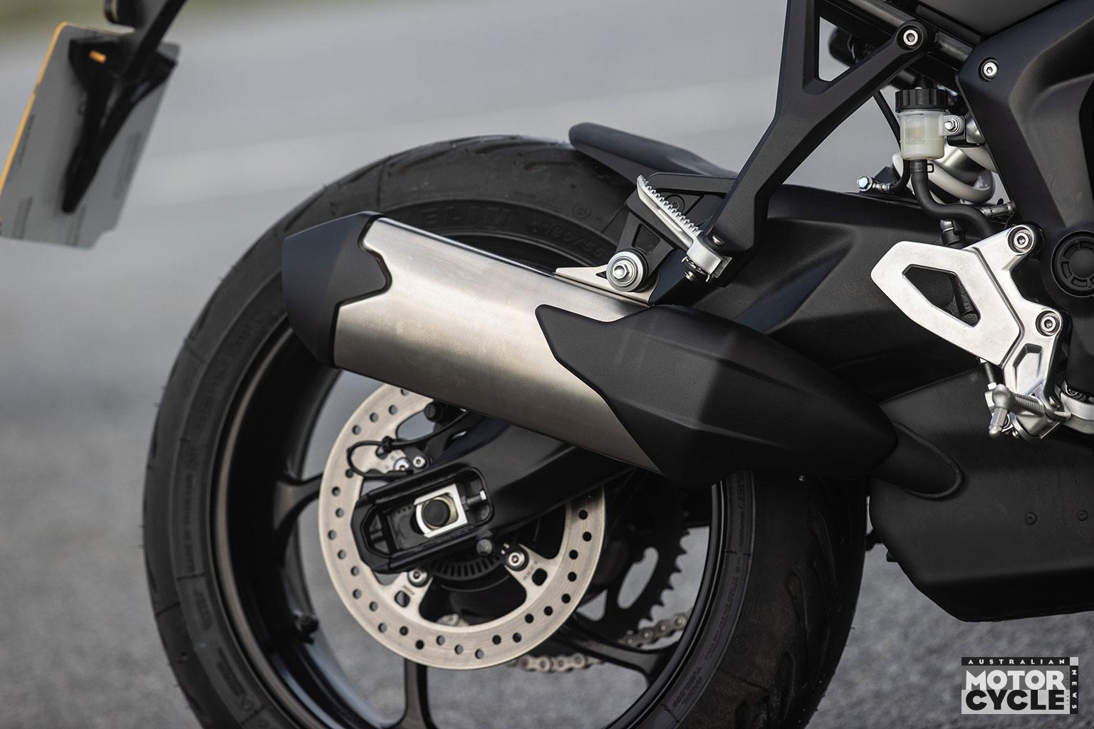 In Sport mode, the throttle response is a little sharper, but not overly aggressive, and you can feel the rider aids have been turned down. The TC works as an anti-wheelie and is relatively smooth when it kicks in. In Sport the front wheel hovers and holds over crests or when accelerating hard in the first two gears, whereas in Road mode wheelies are kept on a tight leash with the front tyre firmly planted.