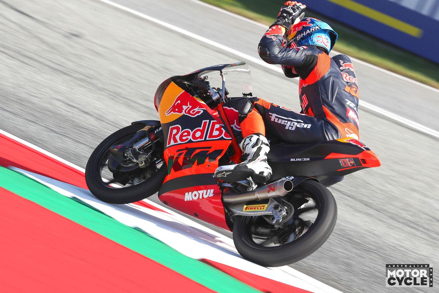 After Jacob topped a one-day Moto3 test at Brno in July, hopes were high coming to Austria. But he had to rejig his set-up after a tough opening day. He pulled it back on Saturday, qualifying 12th before running with the second group early in the race. Tyre degradation prevented him from finishing higher up late on. “I knew it was going to be tough. We had a really good test after Brno but coming here I just couldn’t ride that bike on the Friday. We had to change the bike around. I believe we did so decently. I had a decent first half of the race. I could be aggressive but I just chewed the tyre up toward the end and couldn’t keep up with the boys. That was a shame.”