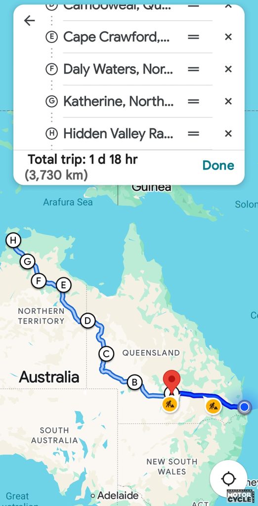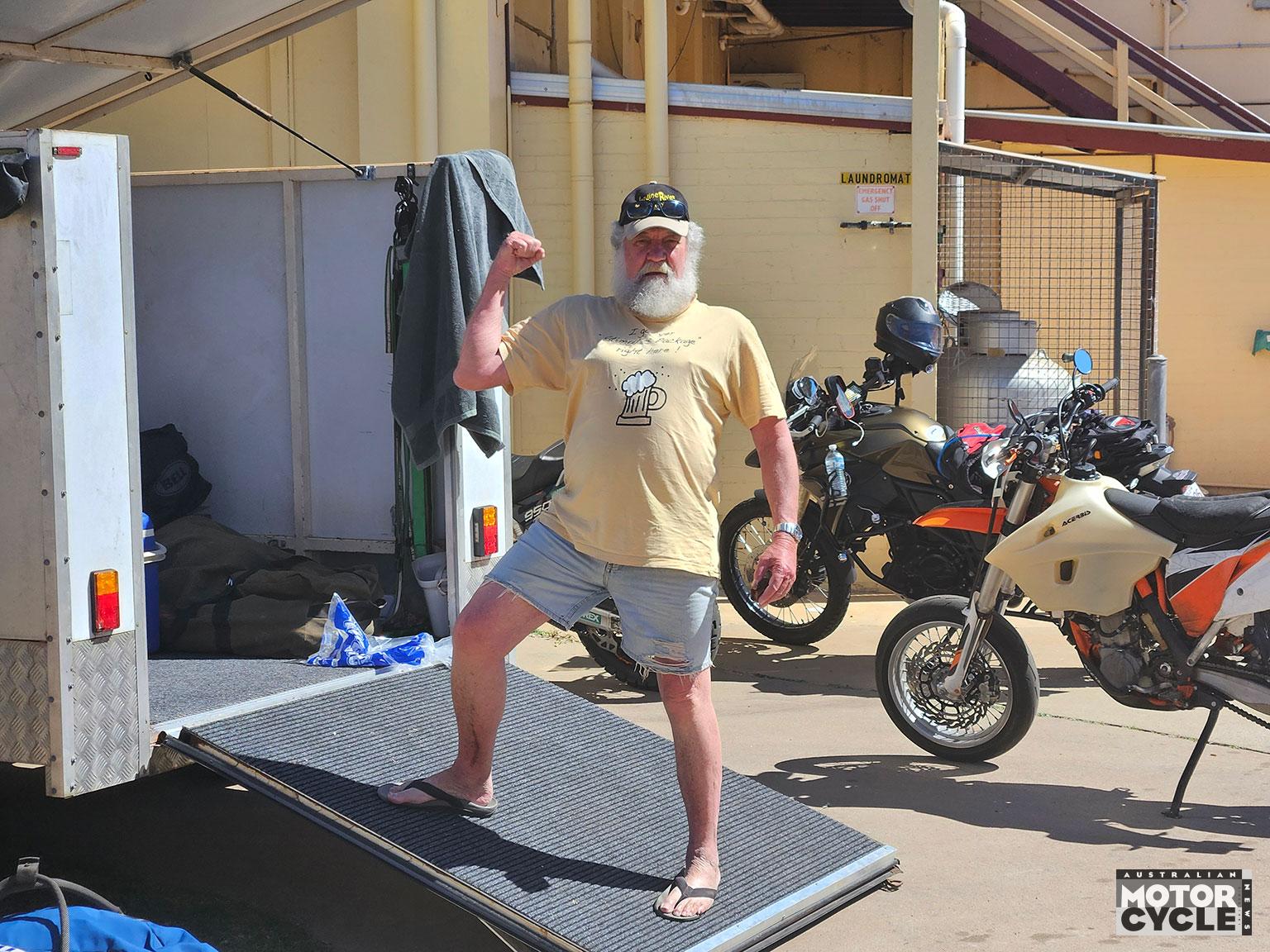 The early days set the tone. The run between Roma and Charleville was supposed to be straightforward, but it quickly turned into chaos. The support drivers missed the RV point in Roma completely, assuming the riders were already out in front. Instead of turning back they pushed on, convinced they were chasing the bikes down the highway. That left us on our own – and the day soon stretched into night.