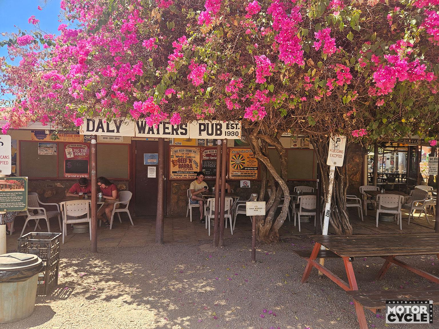 From Cape Crawford the kilometres ticked by under a warming Gulf sun. Daly Waters came right on cue. No ride through the Territory is complete without a stop at its legendary pub, and the boys weren’t about to break tradition. Lunch was served Territory-style (big plate, bigger portions) and eaten under a ceiling dripping with bras, banknotes and souvenirs left by travellers from every corner of the world.
