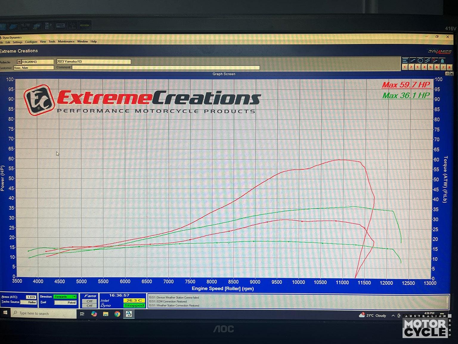 It all kicked off when I picked up the R3 from Trooper Lu’s Garage in Liverpool, about an hour southwest of the Sydney CBD. We benchmarked it on Ben’s dyno over coffee and donuts (as all great builds start) and squeezed out a humble 36.1hp (26.5kW) at the rear wheel. Nothing to brag about.
