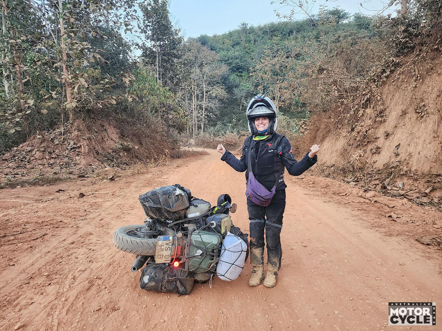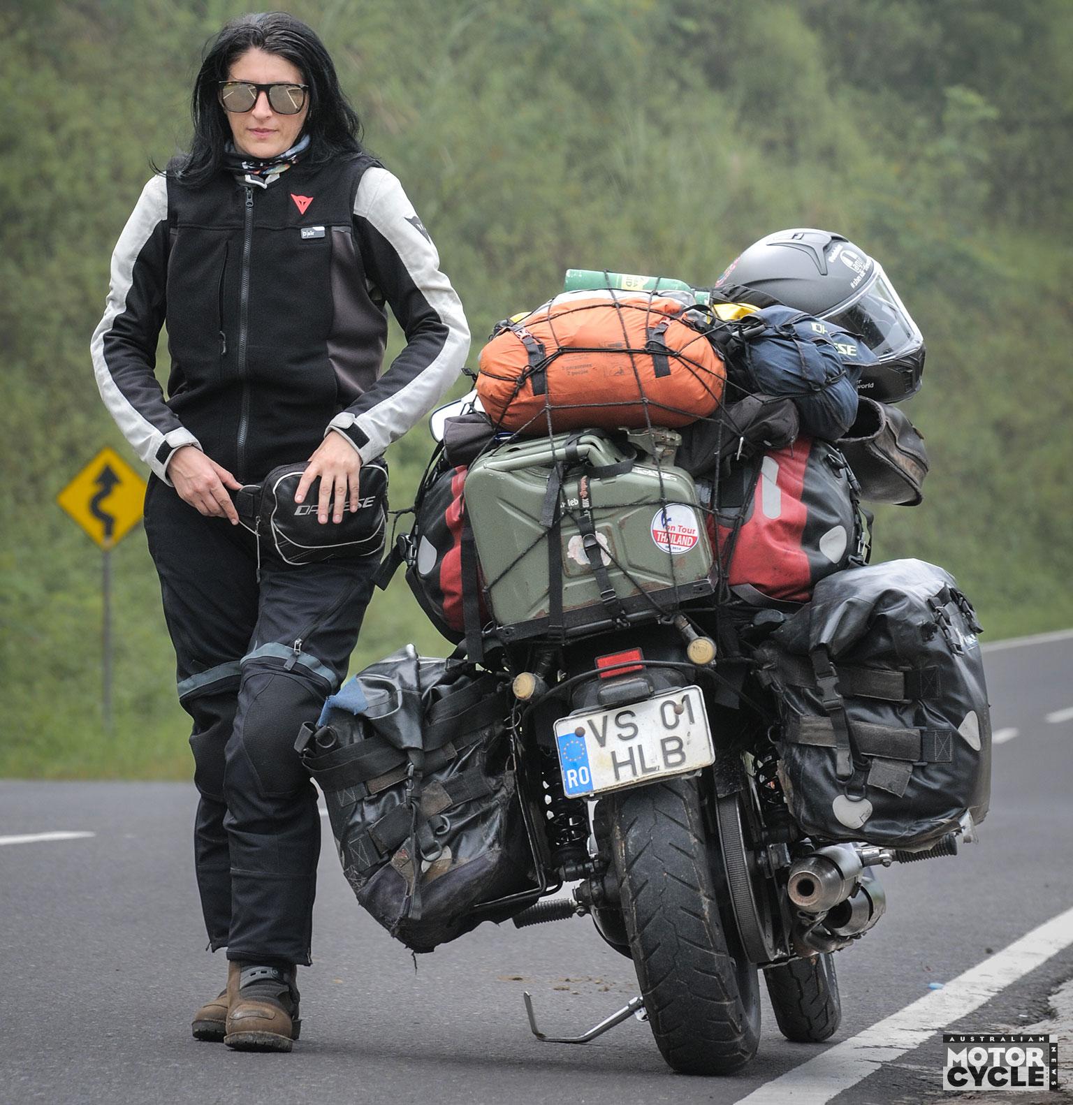 Of course, Elena’s journey hasn’t come without challenges. She has had more than her share of falls, which is unsurprising when you look at what she has strapped to her 883 and the places she’s taken it.