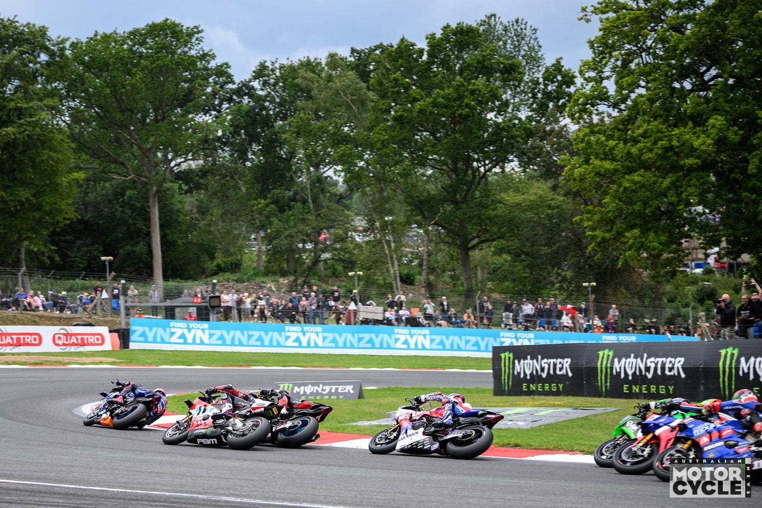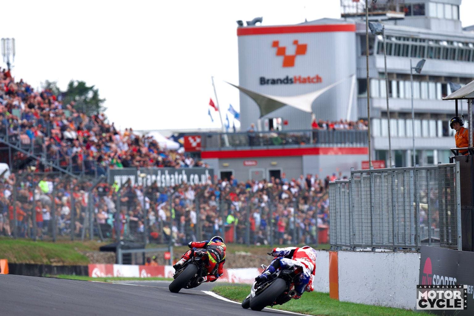 A heavy crash for Lee Jackson brought the field under Safety Car conditions again. When the race resumed, Kent struck immediately, diving past Ray at Paddock Hill Bend. Ryde followed through with a move of his own to take second and soon began a fierce scrap with Kent for the lead. The McAMS Yamaha rider regained the advantage momentarily with a move at Paddock Hill, but Ryde responded at Druids a lap later.