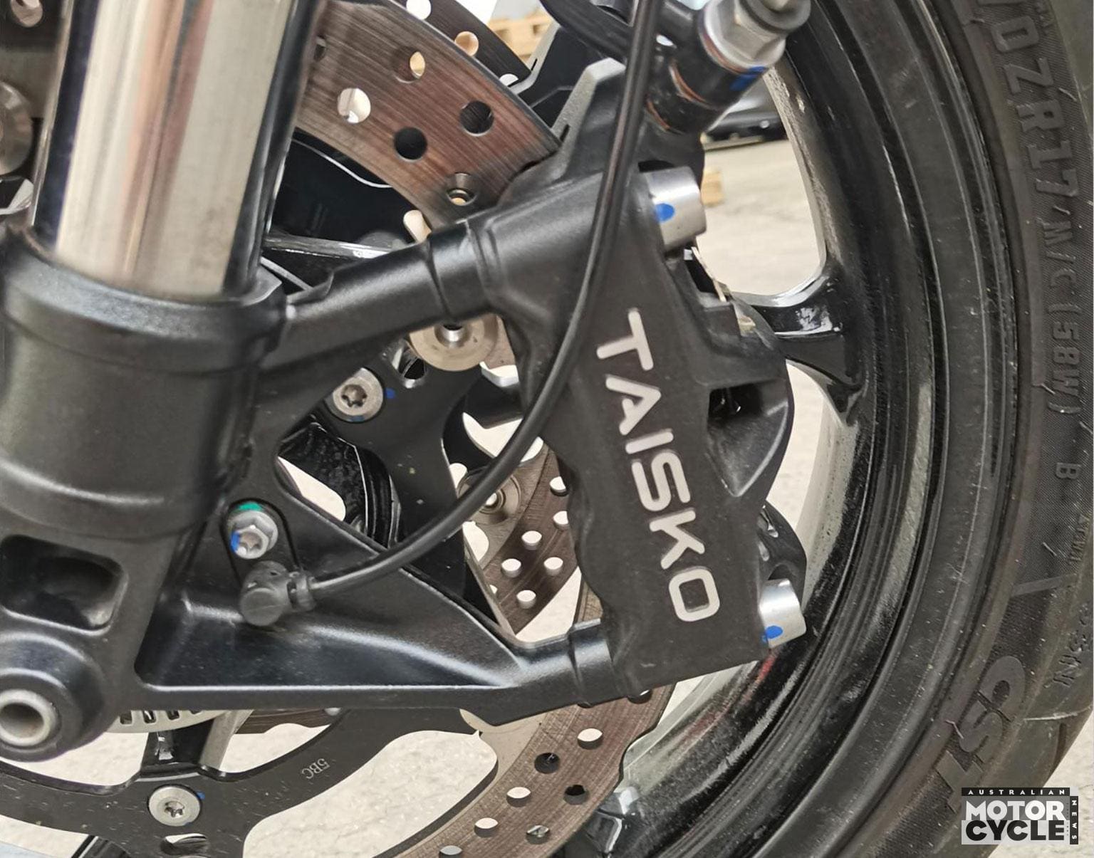 That engine puts out 52kW (70hp) at 13,000rpm and isn’t altered for the new version of the bike. Nor is the aluminium trellis chassis or the suspension, including a 4mm USD fork and a remote reservoir rear shock. The latest approvals show two different brake calipers, with the Taisco four-pots of the current model offered alongside a new design – still radial four-pistons but looking more like Yamaha’s signature Blue Spot calipers, with external piston retention plugs clearly visible.