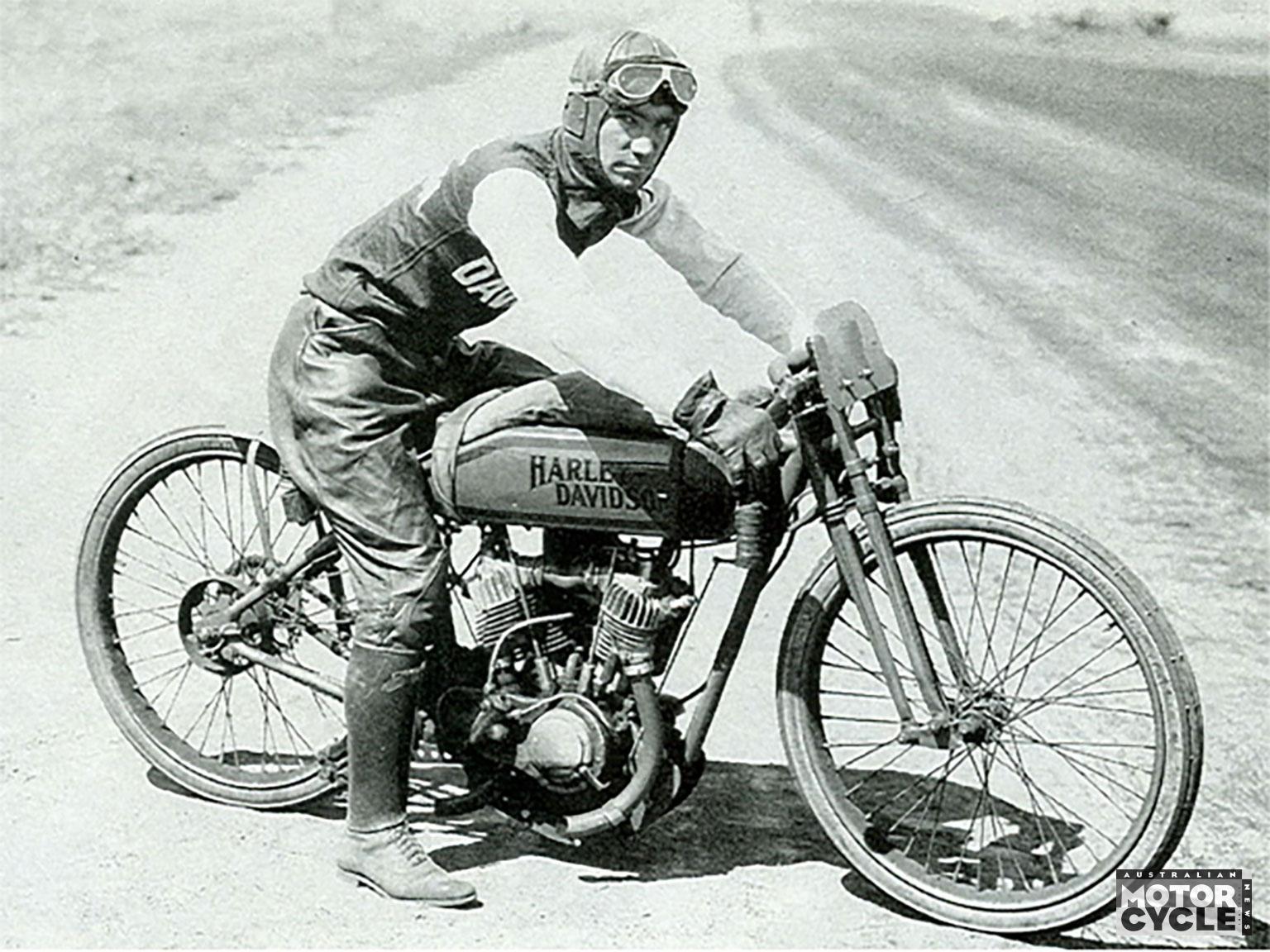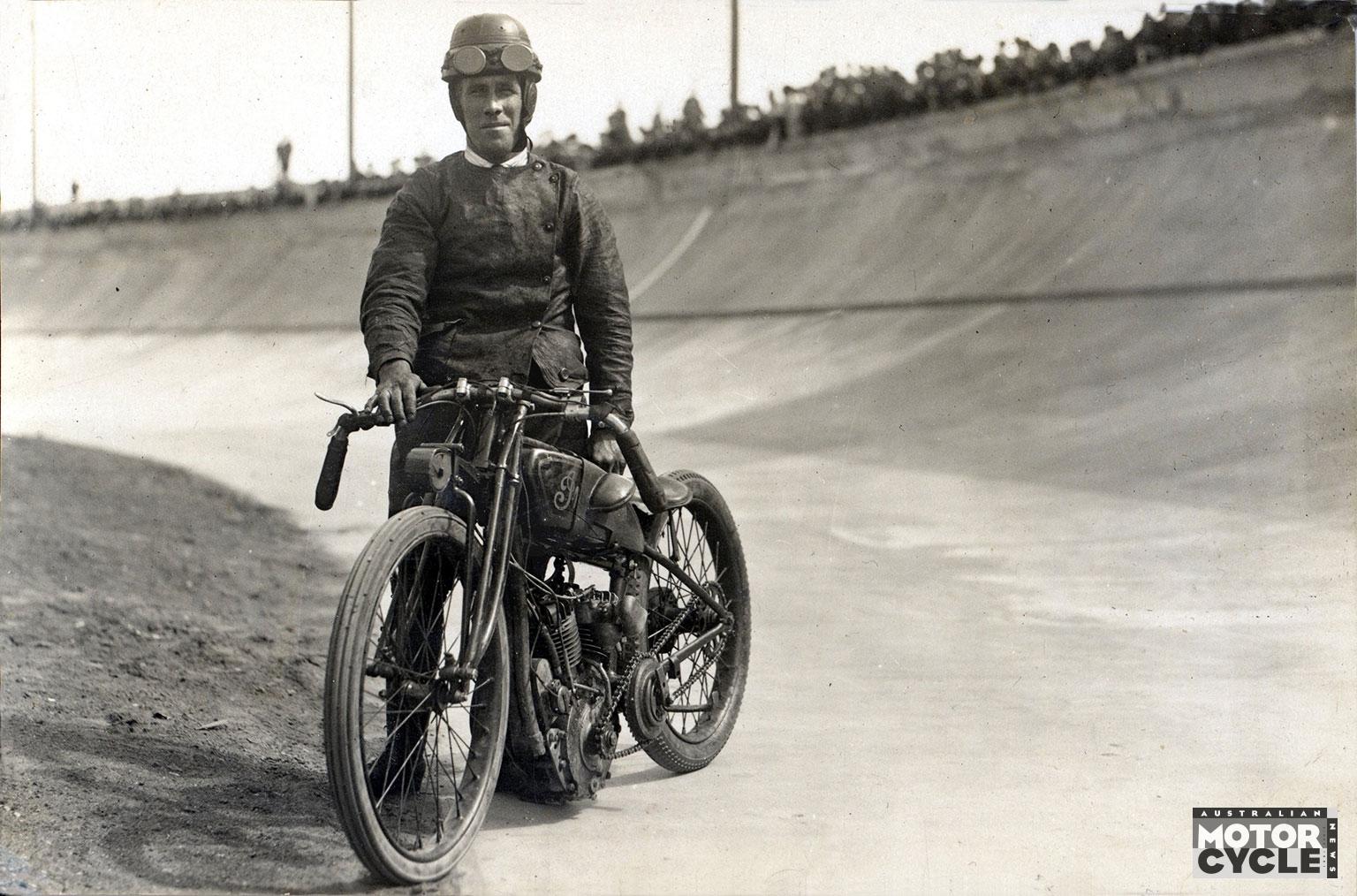 With the opening of the Motordrome scheduled for Saturday 29 November 1924, American boardtrack champions Ralph Hepburn, Jim Davis, Paul Henderson and Johnny Seymour arrived in Australia well in advance. Unfortunately for Hepburn and Davis, not so their Harley-Davidsons, forcing them to compete on Douglas twins readily organised by Wren’s track promoter Jack Campbell. More disconcerting for the Australians was that the American contingent insisted that all competitors should disconnect their brakes – strangely, the local officials agreed.