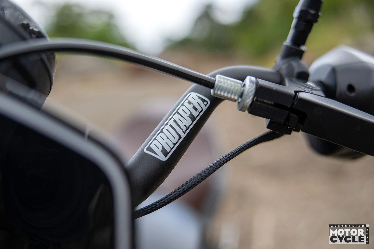 The FTR isn’t a hooligan machine in the same vein as a Superduke, Tuono or S 1000 R though, instead mixing the tough attitude and grunt of a cruiser with the riding position of a naked. I’ve never really ridden anything quite like it before, but the more time I spent in the saddle the more it started to make sense. Speaking of which, the flat, broad seat was comfortable enough for shorter rides but, according to my behind-ometer, a little more padding wouldn’t go astray for all-day trips. In general, though, the high ‘ProTaper’ bars and mid-mounted footpegs struck a good compromise between comfort and control on different surfaces. The preload/compression adjustable suspension soaked up bumps reasonably well, but the Rally misses out on the high-spec Sachs and Öhlins units found on the pricier FTR variants, meaning its laid-down shock was sometimes a bit abrupt over dodgy stretches of blacktop.