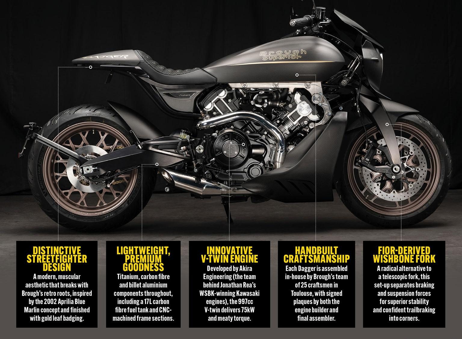 Henriette and his men have a winner in the new Dagger. Still, it’s a pity ownership will be restricted to the well-heeled few. In relaunching the Brough Superior marque after 75 years of hibernation, they can be proud of ensuring the legend lives again, thanks to producing yet another appealing and even more practical variant of one of the most individual modern-day motorcycles that money can buy.