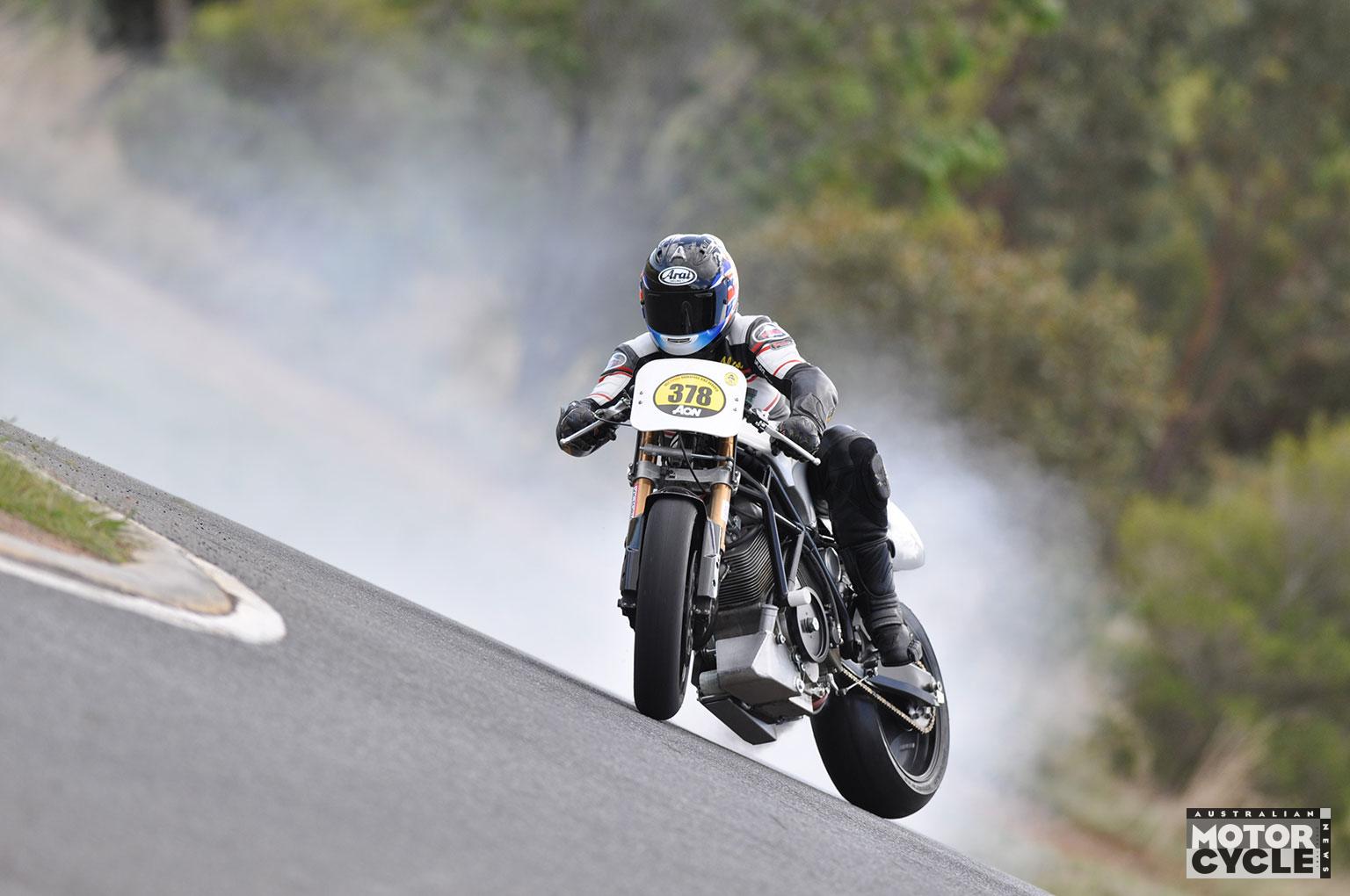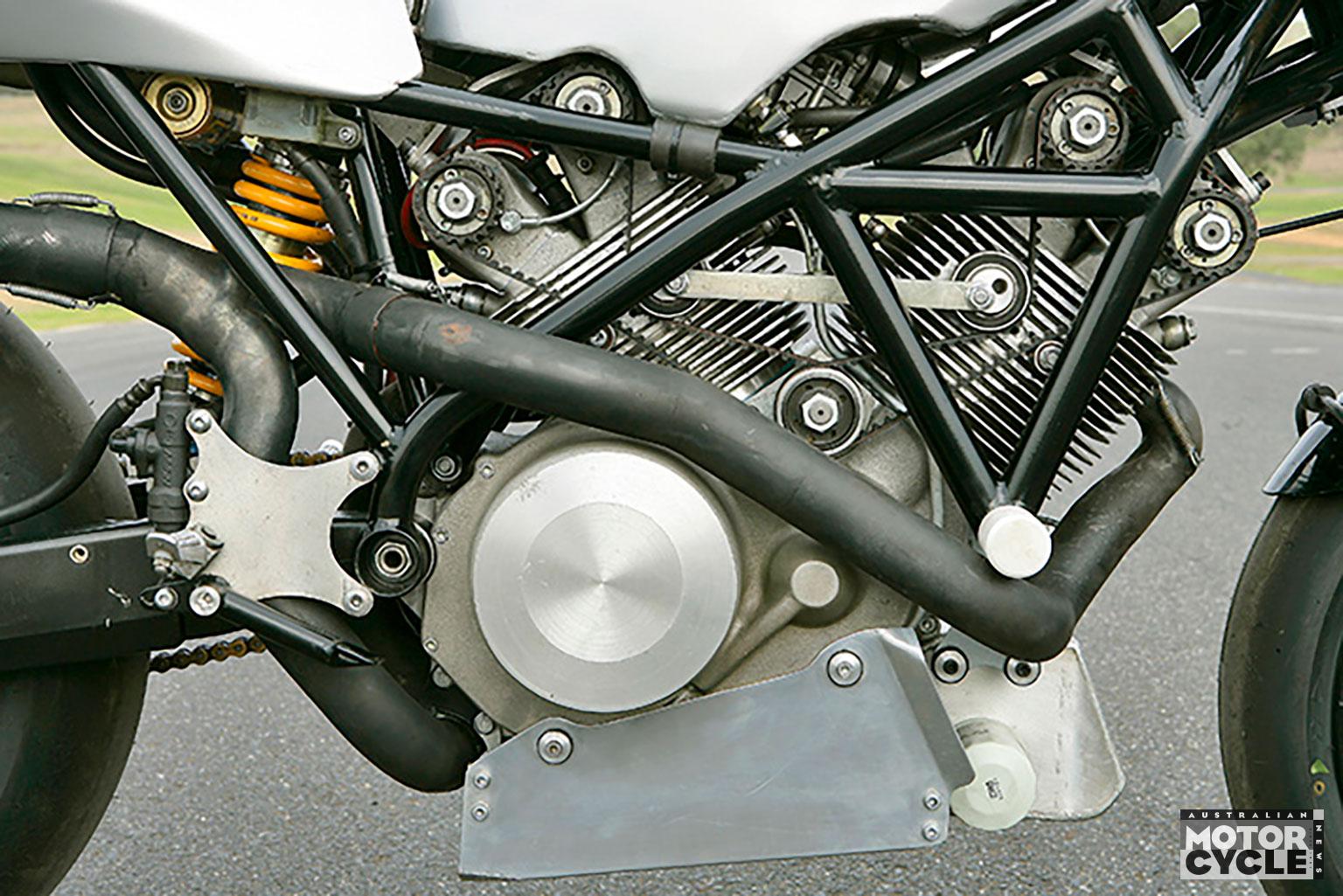 Riding the street version of this bike was quite a different experience, for Fraser has spent the past seven years since completing his E120S in covering 26,700km on it and constantly improving it – one reason he doesn’t want to mess with EFI. With 77kW (103hp) delivered to the rear wheel at 6800rpm at the time I rode it, his Big-Twin Beezer had quite sufficient grunt on paper to be an endearing road ride, and that’s the way it turned out. For the engine is indeed just as lusty and torquey as you’d hope a performance V-twin would be, with no real vibration despite not having a counterbalancer – KTM has to run one in its own 75º V-twin LC8, so what does Doug Fraser know that the Austrians don’t?!