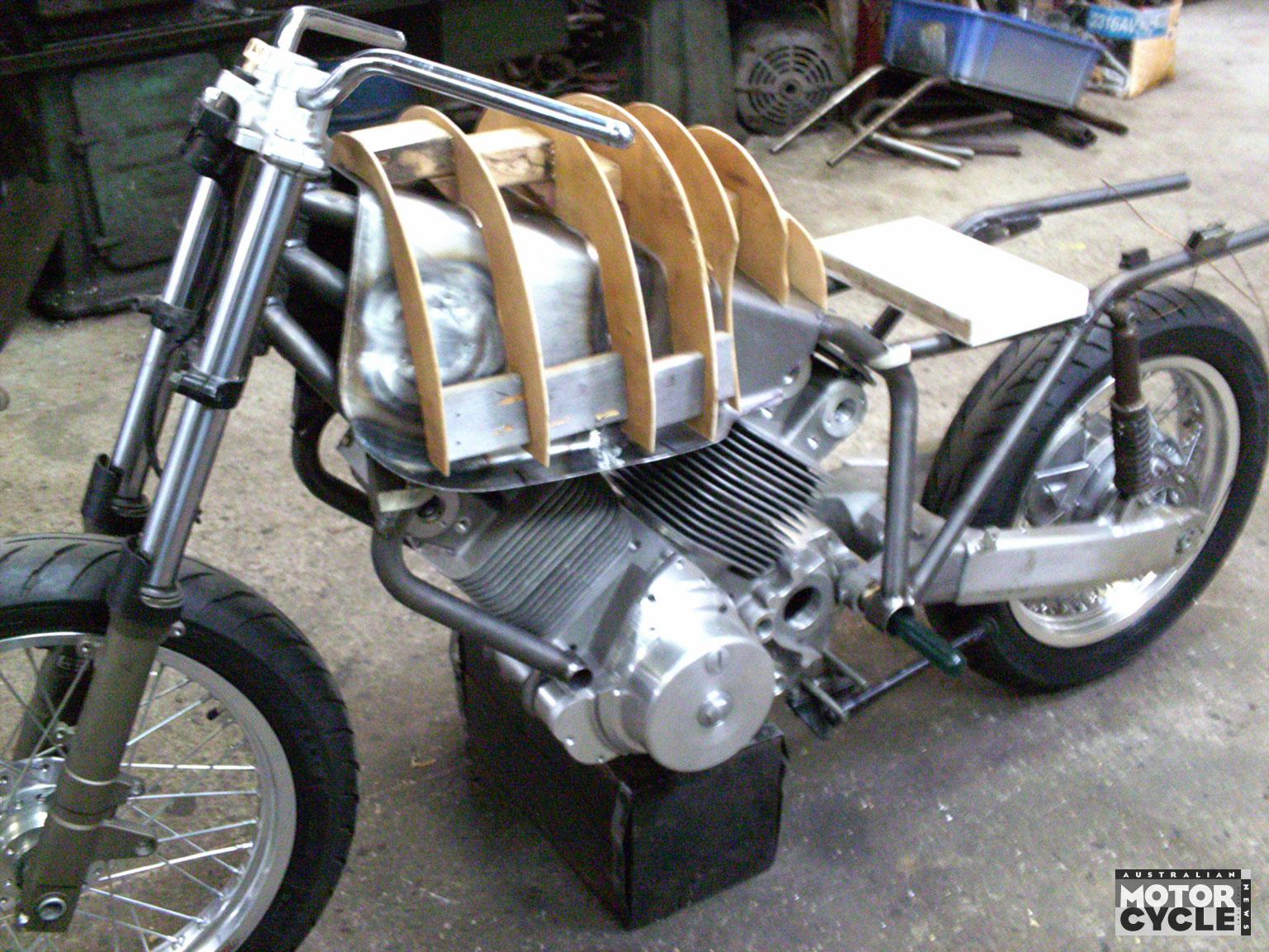 Seventy-something Fraser is a toolmaker by trade who today is an electrical engineer focusing on heavy-duty industrial electric motors, and the design and manufacture of related switchgear. Hence his large but crowded suburban factory on the road to Phillip Island is packed with an array of lathes, grinders, milling machines and welders, all of which can also be used to build a bike from the ground up!