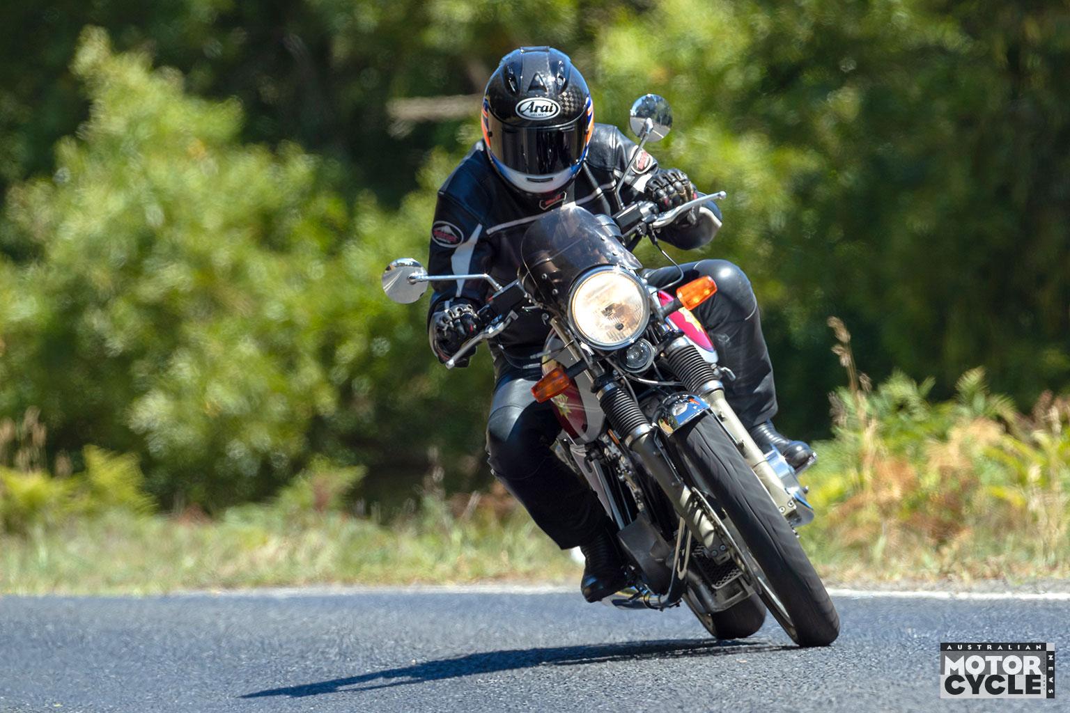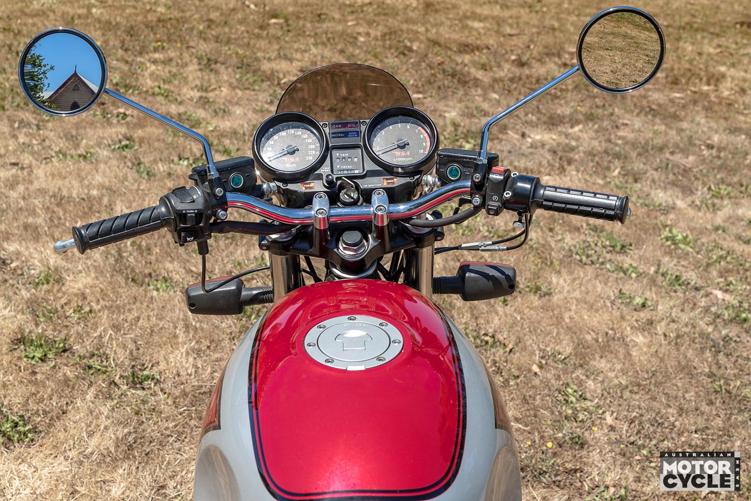 ❌ CONS – Limited top-end from small carbs, front brake needs a firm squeeze, understeers if ridden lazily, mixed parts must surely complicate maintenance!
