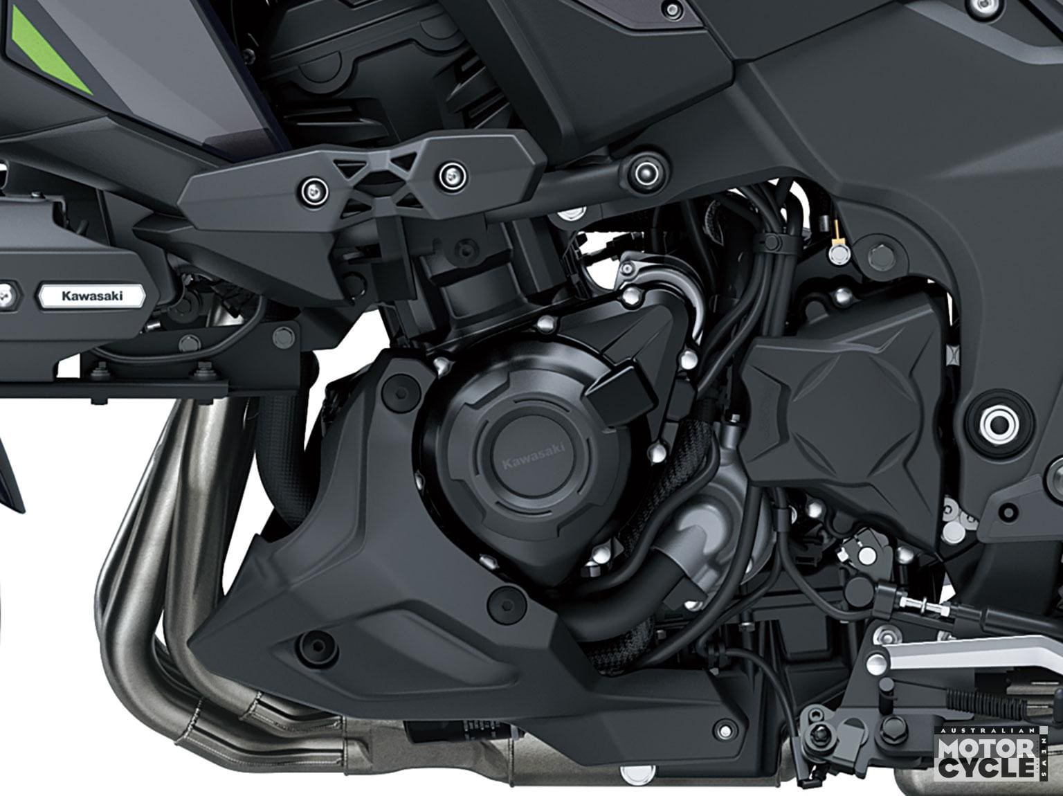 The special, long-wearing Kawasaki paint is beautiful and deep, the black engine treatment looks permanent, the instruments are predictably laid out and everything (except the USB-C socket, which looks like a wobbly afterthought) looks right in a classy kinda way.