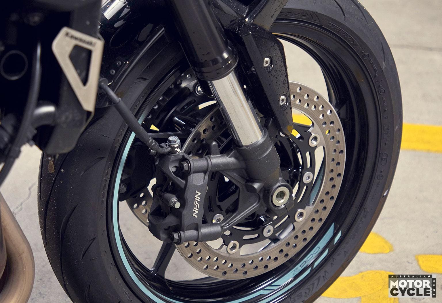 The Z900 is a bit of a compromise when it comes to boingers. The 41mm upside-down fork only offers rebound and preload adjustment. Same goes for the rear, although the owner’s manual does suggest visiting your friendly Kawasaki dealer to adjust the rear pre-load.