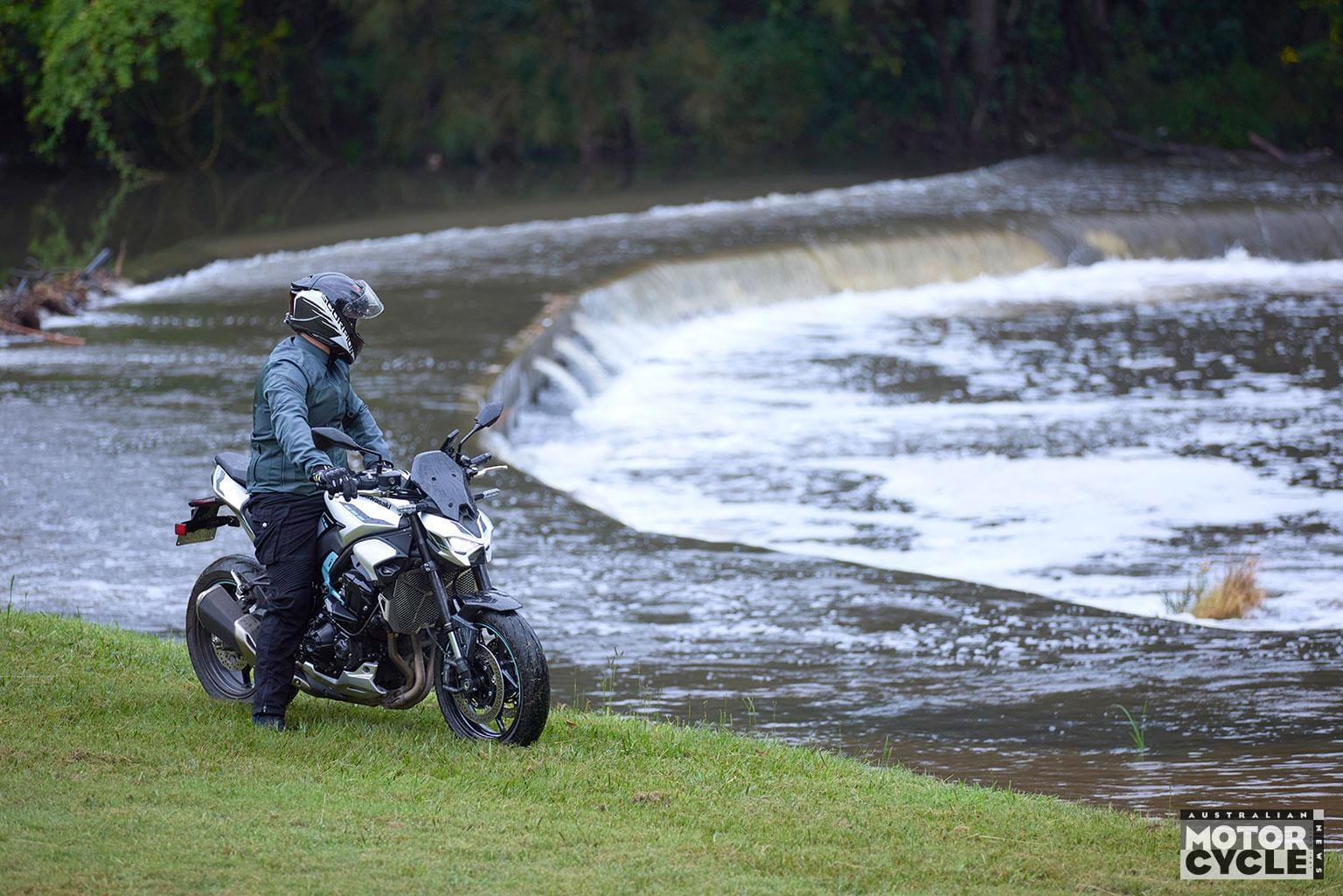 I managed over 300km in one tank of gogo juice and the seat passed my tank-of-fuel comfort test. The riding position is very natural and the levers are span adjustable. When stopped there is a little bit of weight on your wrists but nothing once you’re moving along, thanks to the uninterrupted breeze on your chest. The front fairing is there to protect the dash from the elements and that’s it. If you want a windscreen, check out the Ninja 1100. The Z900 is here for style rather than wind protection. And for those wondering, yes, I was soaked. The only thing dry was my feet, thanks to my Gaerne Gortex kicks.