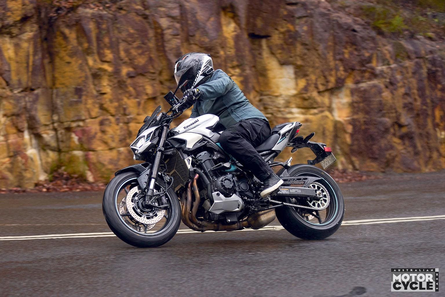 Mid-corner, the Z can scrape a footpeg, allowing you to drag your knee or just simply meander around a corner at a snail’s pace; it’s happy whichever way you want to ride it. Much of this feeling I attribute to the tyres. Tyres can make or break your confidence, and the Dunlop Q5s are a really nice choice for sporty riding. They don’t look like they would excel in the wet, but they did – and then they were flawless in the dry.