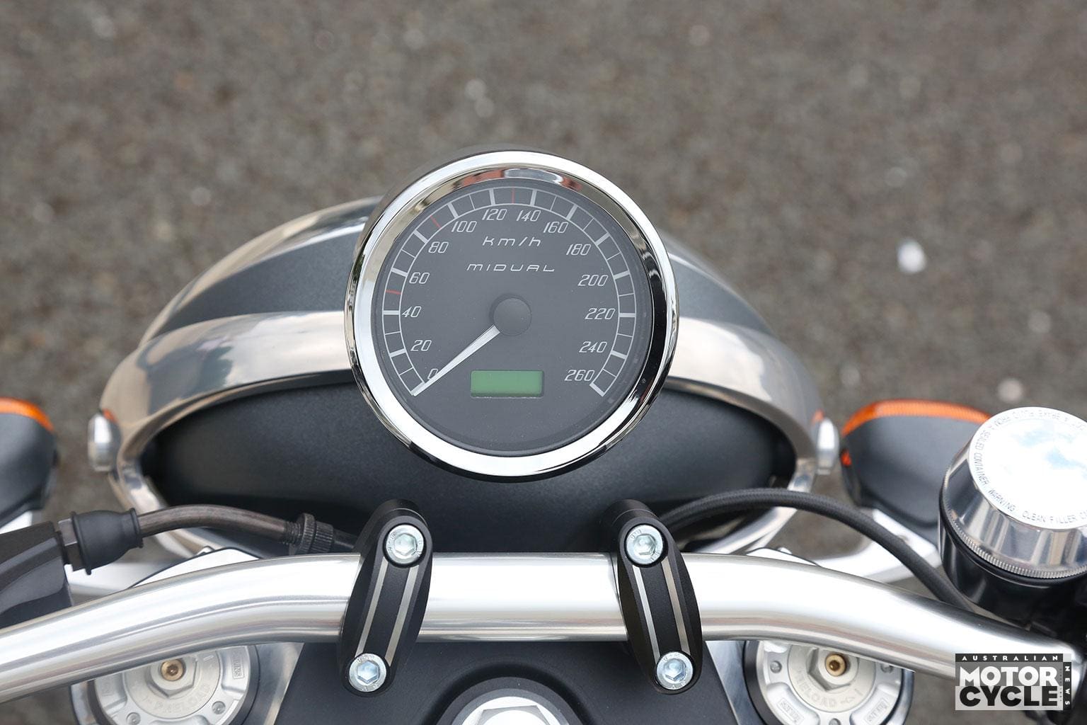 Though 100hp doesn’t sound like a lot these days, it’s how you deliver it that counts, and the Midual’s extremely broad spread of torque makes this a satisfying real-world ride. The Athena ECU is well mapped, with zero snatch off a closed throttle, just a smooth pickup that’s in keeping with the bike’s aspirations to be refined and classy. The gearbox’s shift action is excellent – light but positive, and for sure one of the best I’ve yet encountered riding a boxer twin.