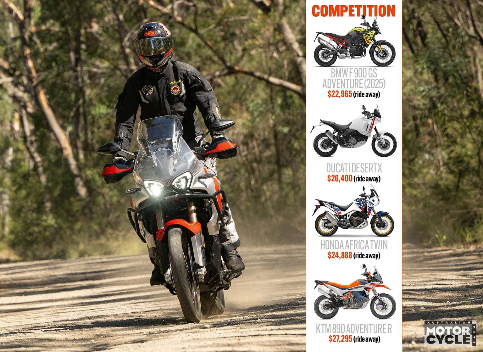 Test bike fitted with engine skid plate, crash bars kit and spotlight set – total ride away price, $37,447