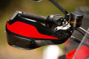 Classy-looking hand protectors but you’d expect nothing less on a $35k bike