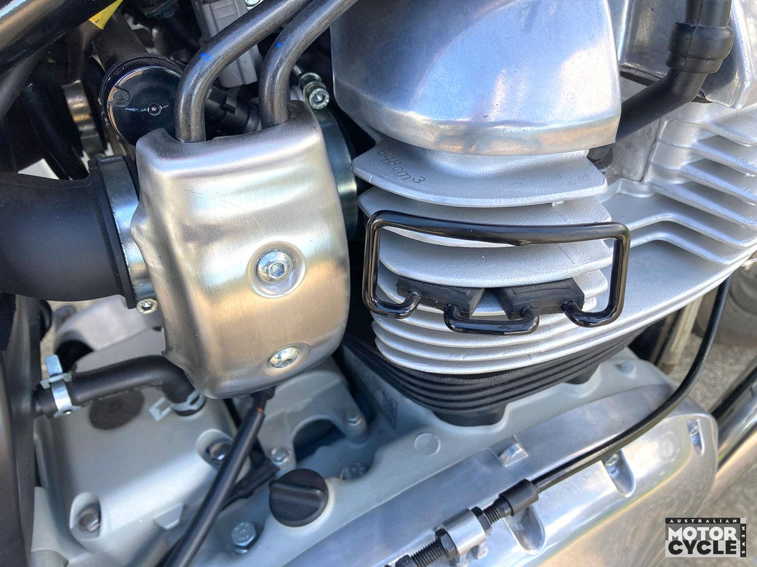 Royal Enfield sees the Interceptor 650 as a potential blank canvas for an owner who wants to modify to personal taste. For example, the plastic mudguard extensions are easily removed and there is an extensive catalogue of add-ons. These include a current offer of an Interceptor Accessory Kit for $840 that includes pannier mounts, soft panniers, an extensive alloy sump guard, engine crash bars and a small touring windscreen.