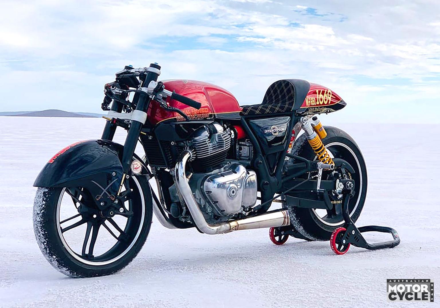 Meanwhile in Australia, Melbourne dealer Mid Life Cycles built a land speed racer and entered it in Royal Enfield’s 2019 Busted Knuckles custom competition. The engine featured locally developed parts Mid Life Cycles intended to offer to road customers. These included a ported head with racing-profile camshafts, high-compression forged pistons and modified throttle bodies.