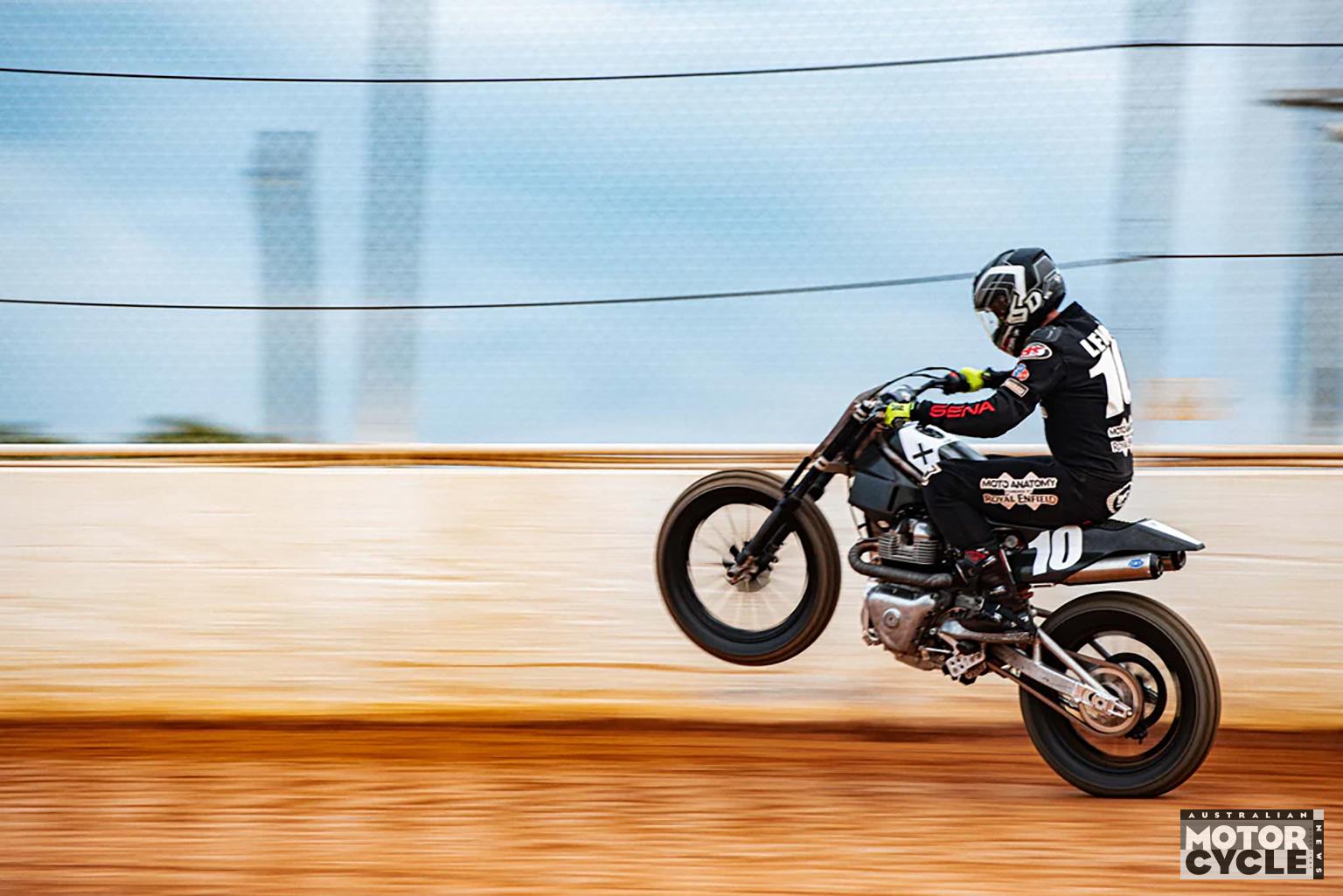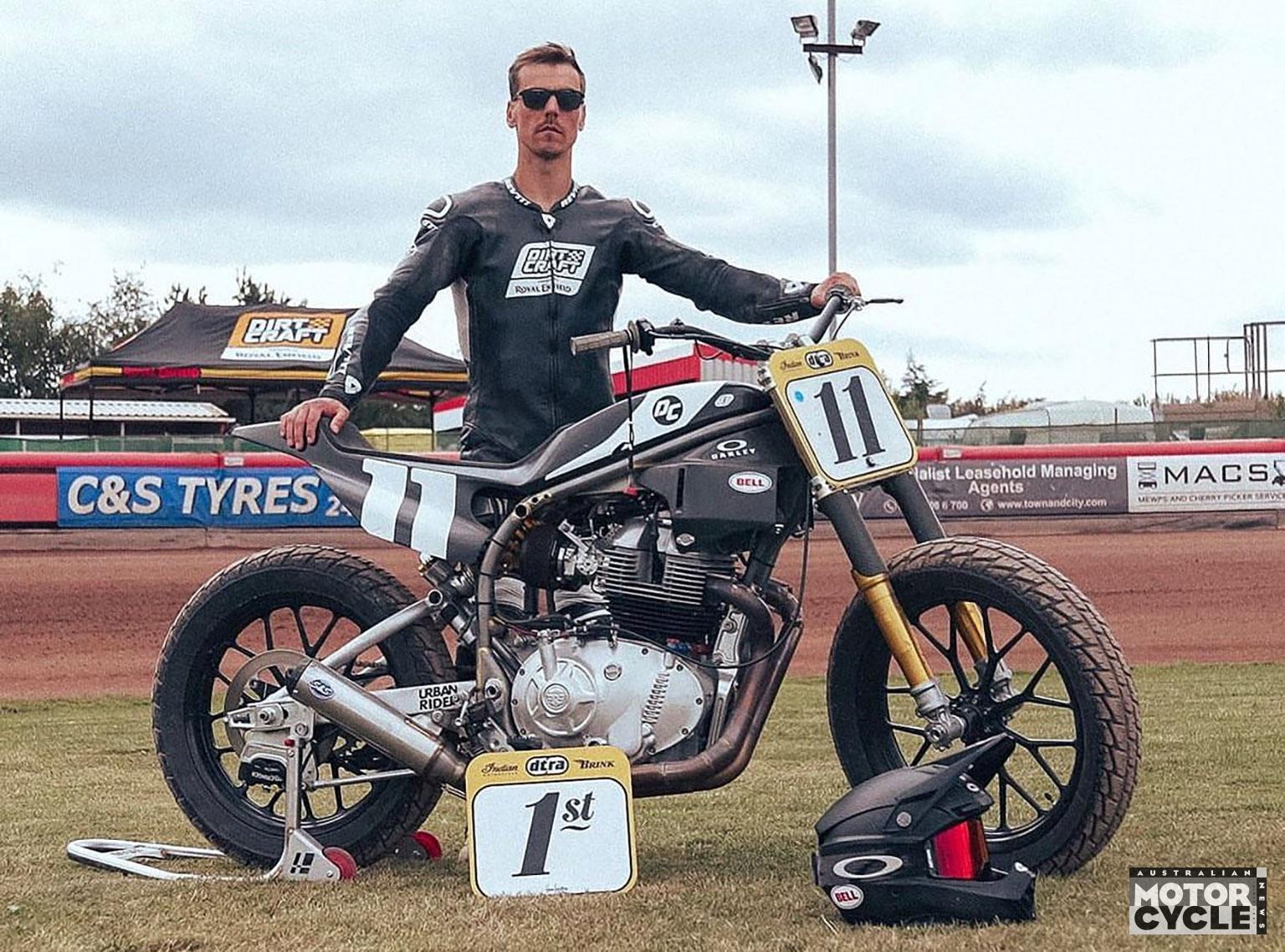 A year later in the UK, Gary Birtwhistle and Aussie Paul Young won the Dirt Track Rider’s Association championship on debut using Interceptor 650 engines in Harris Performance frames. It was Royal Enfield’s first factory title in Europe since Johnny Britten won the National Trials title way back in 1956.