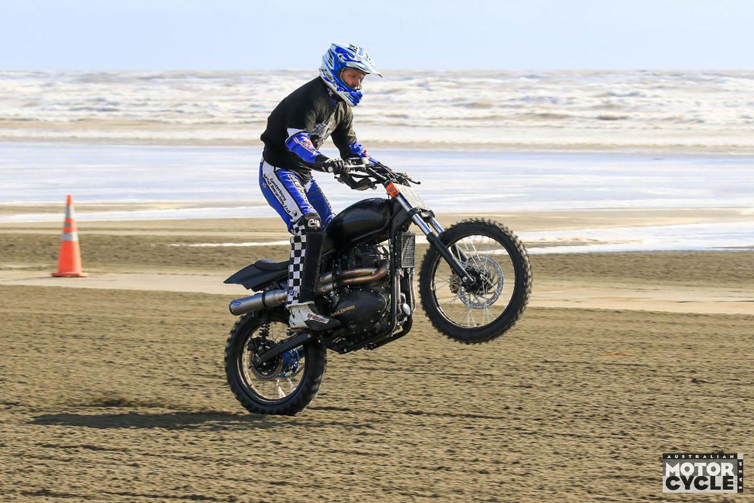 Burt Munro would have loved this! A locally-built Interceptor challenged for the win at the annual beach race