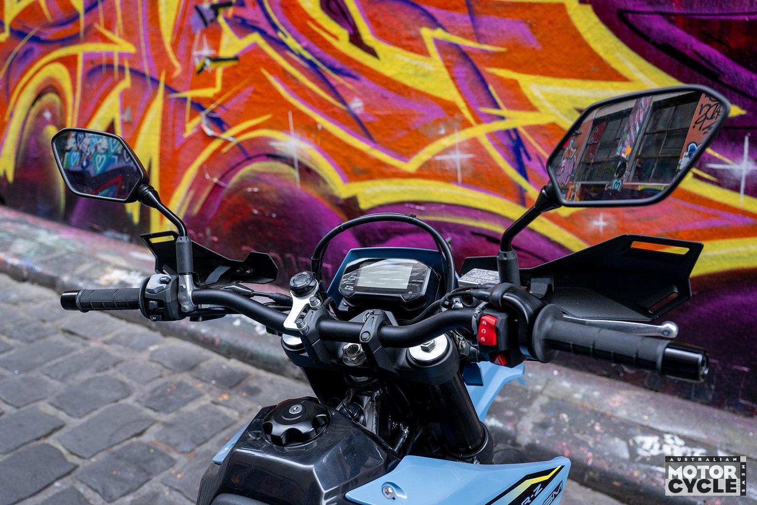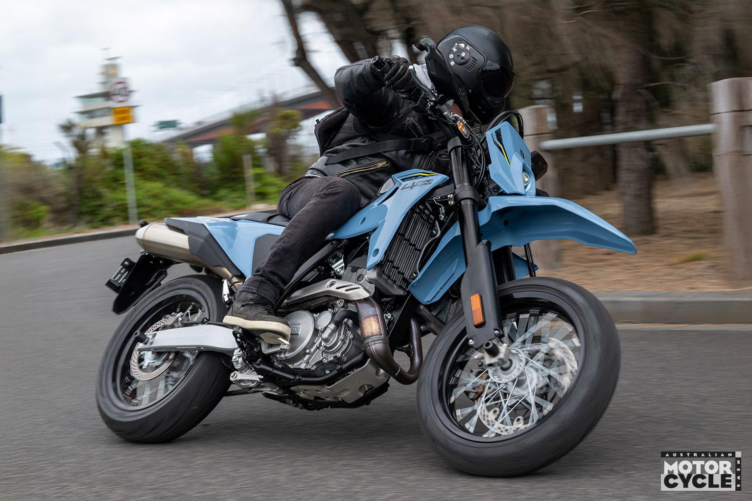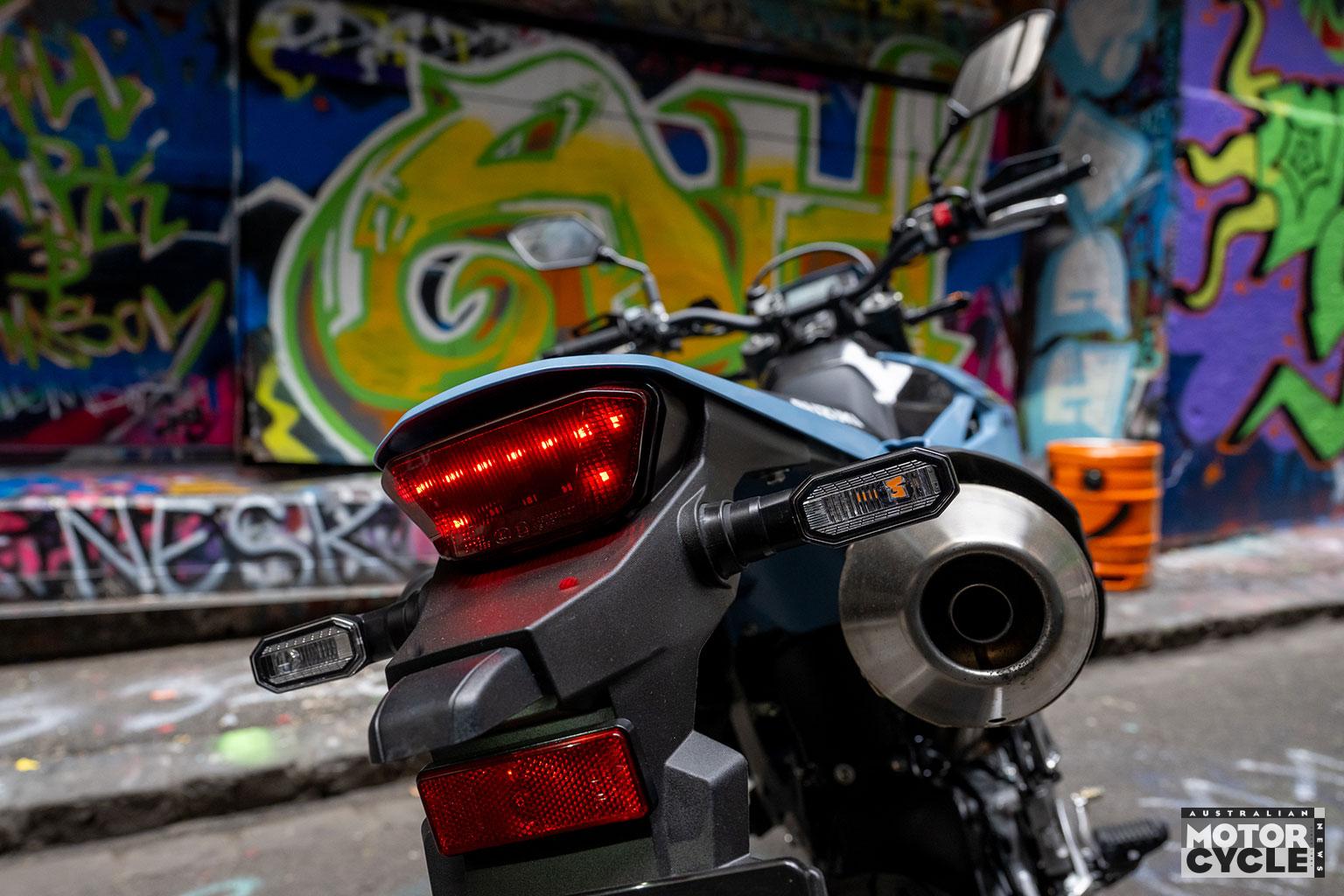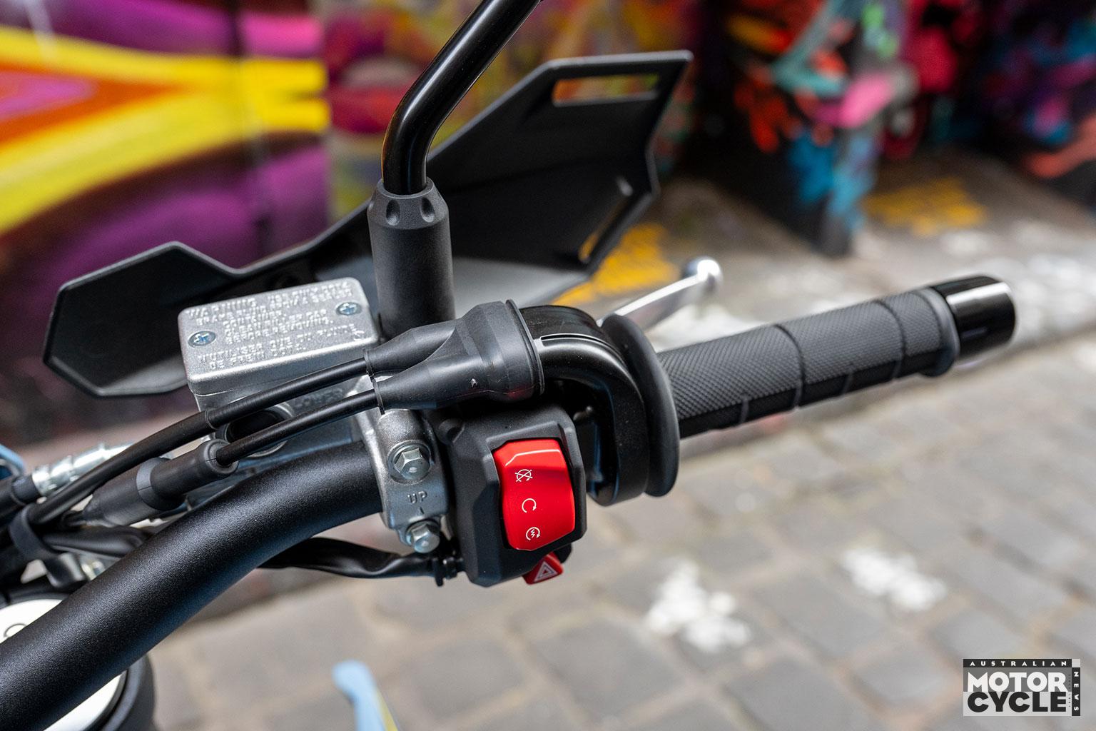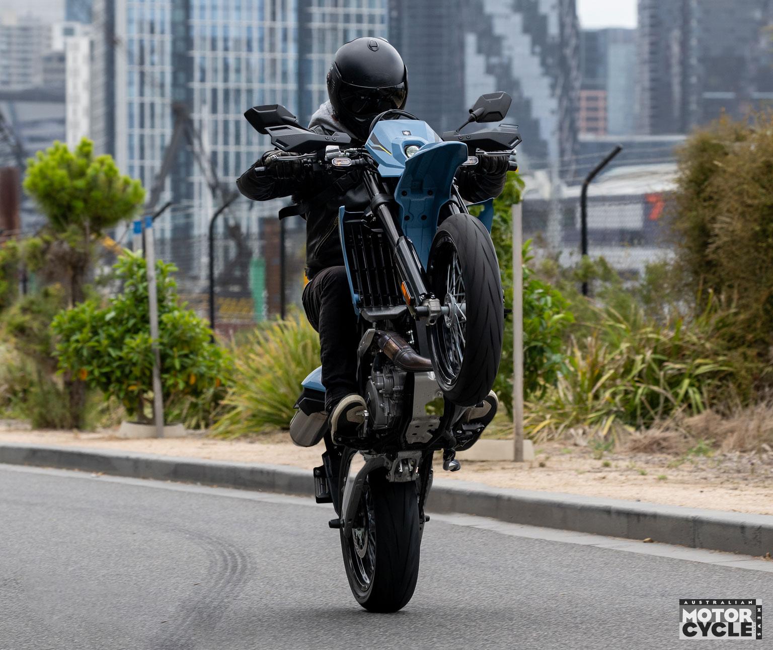 Whether riding modes are necessary on a 28kW (37.5hp) bike is debatable, but the softer modes would be useful for learners in taming the strong initial throttle response – particularly in first gear. The switchable rear ABS and TC presets are terrific, broadening the SM’s usefulness when the surface changes besides just making it more fun. The rear ABS setting isn’t remembered when you restart the bike, and it’s a press-and-hold function while stationary to reselect. Slightly annoying, but also probably the sensible call for a LAMS bike when wet roads enter the chat.