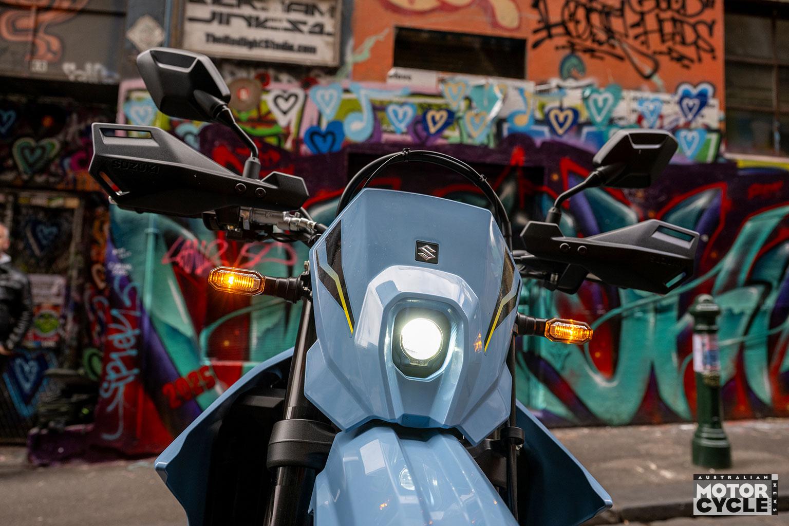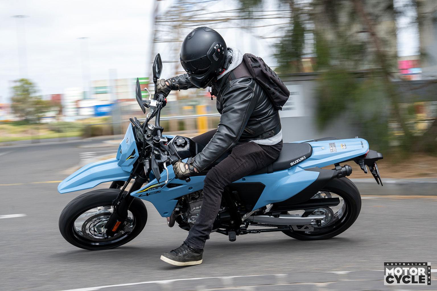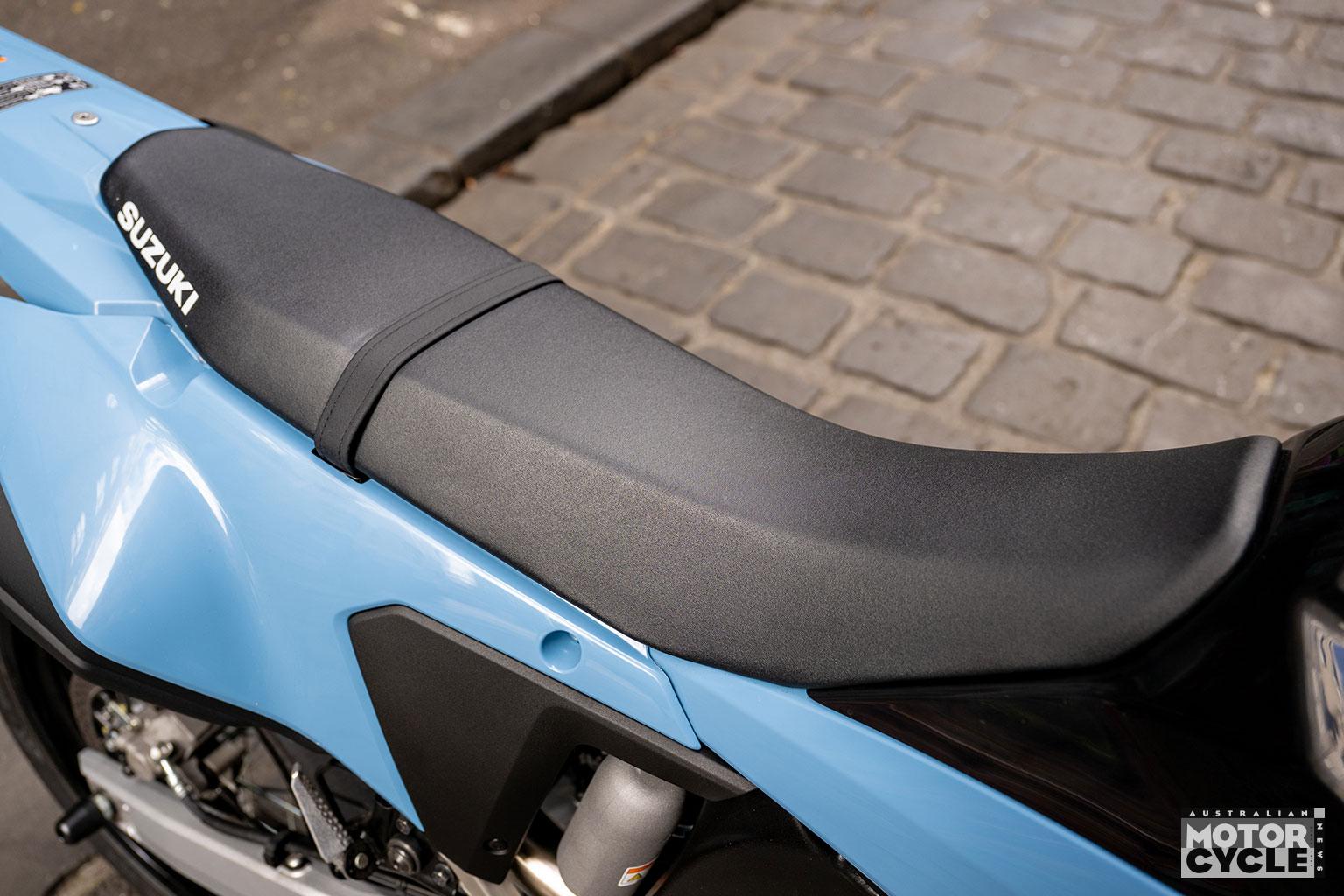 As you’d expect for a supermotard, the seat is reasonably tall at 890mm, which meant it was easier for this average-height tester to step onto the left footpeg with the sidestand down before swinging my leg over. Once seated, the suspension settles into a manageable stance, and the narrow seat helps your boot find the deck at traffic lights even if you don’t have giraffe legs. Suzuki does offer a 30mm lower seat as an option for those who are a bit on the shorter side too.