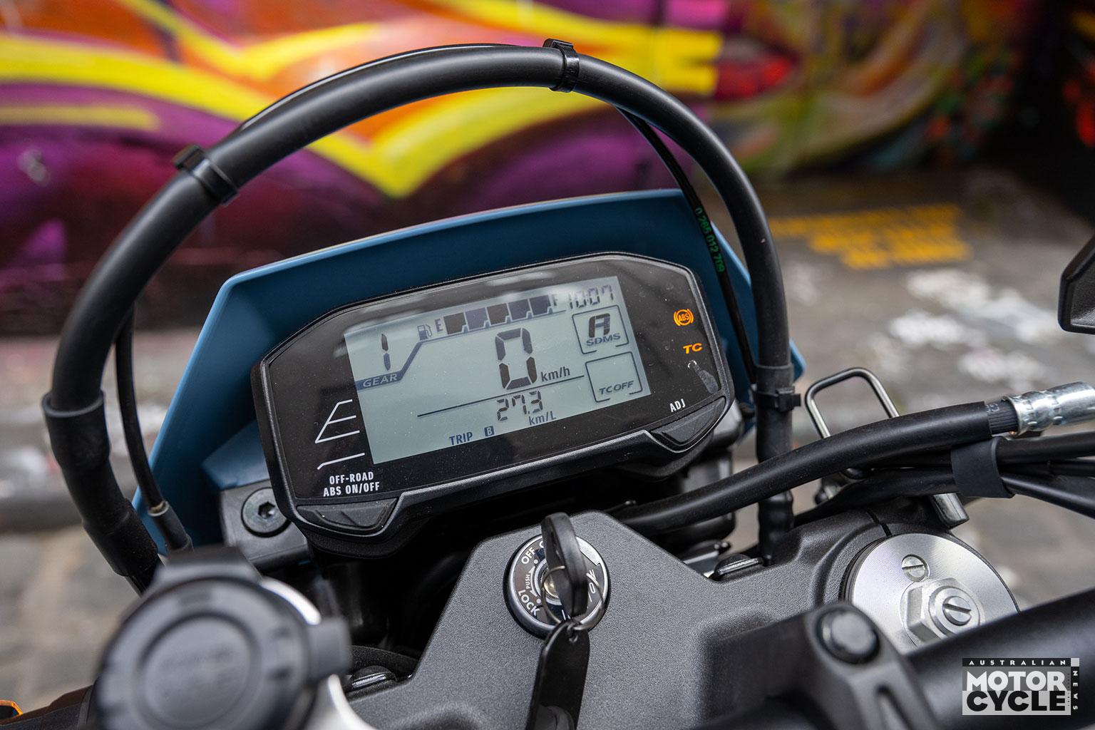 No real complaints otherwise. The mirrors work, and the LCD display is easy enough to take in at a glance despite its compact size. Although there are some vibes through the ’bars, the engine is surprisingly smooth.