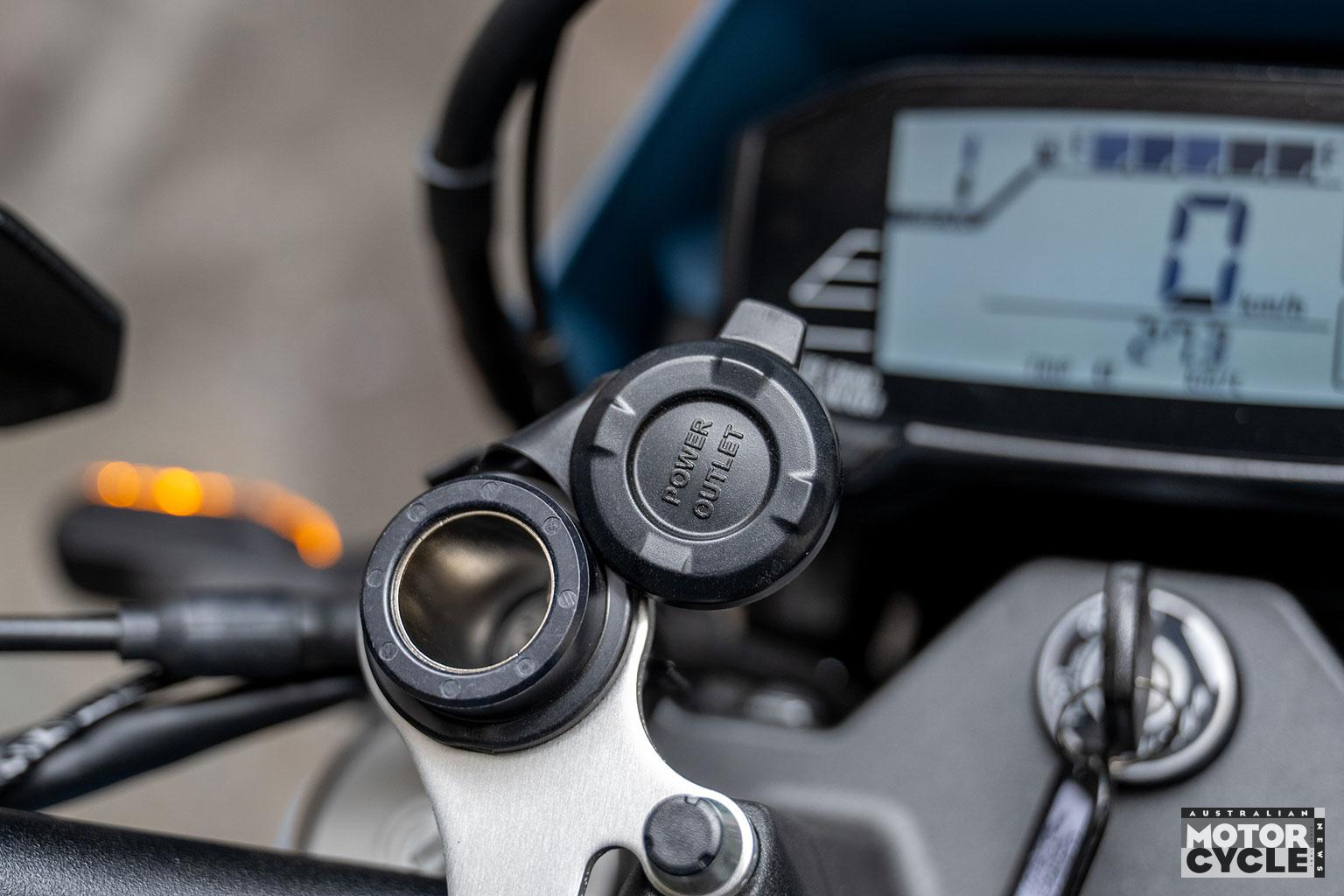 The round headlight looks great to my eye, and in true Zook tradition the bluish paint looks schmick. The guards and plastics are, well, plasticky given the dual-sport roots, but that’s part of the genre. The overall balance of attitude and quality is spot on. Details like the exposed cable runs up near the front, engine cover, spoked wire wheels, cast aluminium swingarm and full LED lighting give it a gnarly but modern edge.