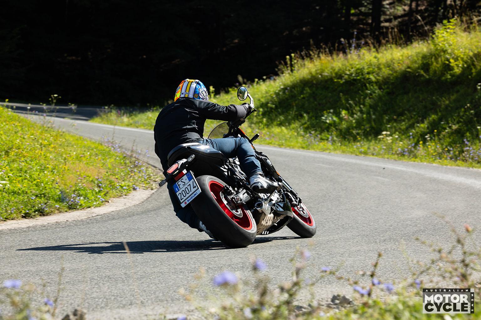 Our tester could tickle the tarmac with the footpegs as he hit the apex