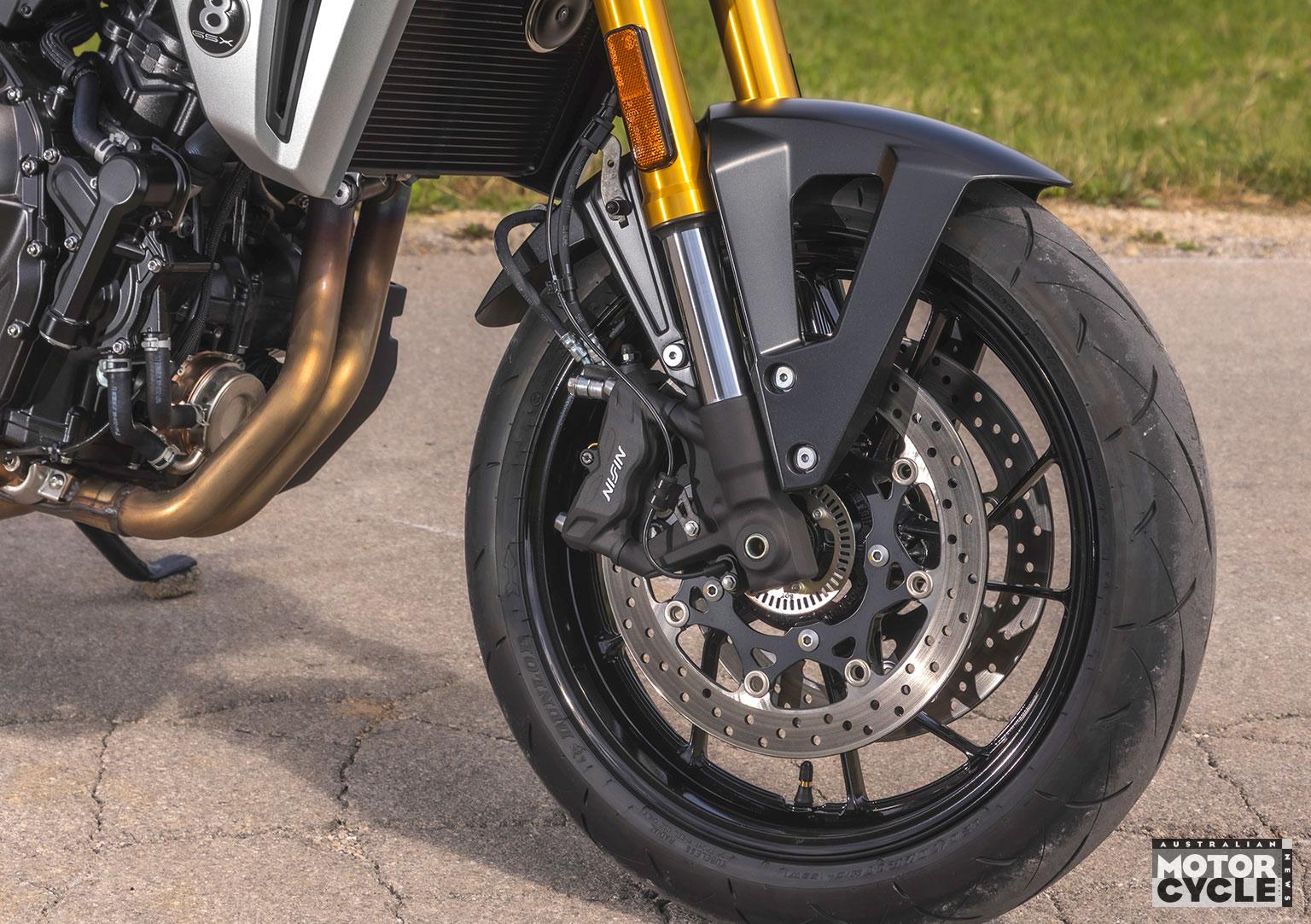 There’s no adjustment on the KYB front fork and only spring pre-load on the rear, but I never felt compelled to stop roadside and make a change as the balance between ride quality and support in turns is well judged. The Nissin radial stoppers are effective if not razor sharp, while the ABS is not lean sensitive, which might raise a few eyebrows on an $18k bike. That said, the system works well with only the rear kicking in from time to time when ridden hard.
