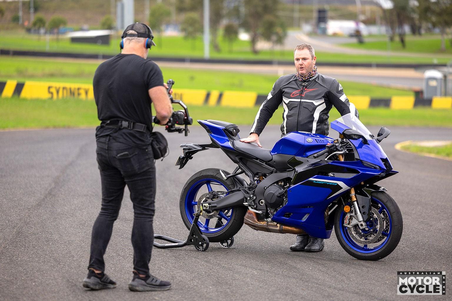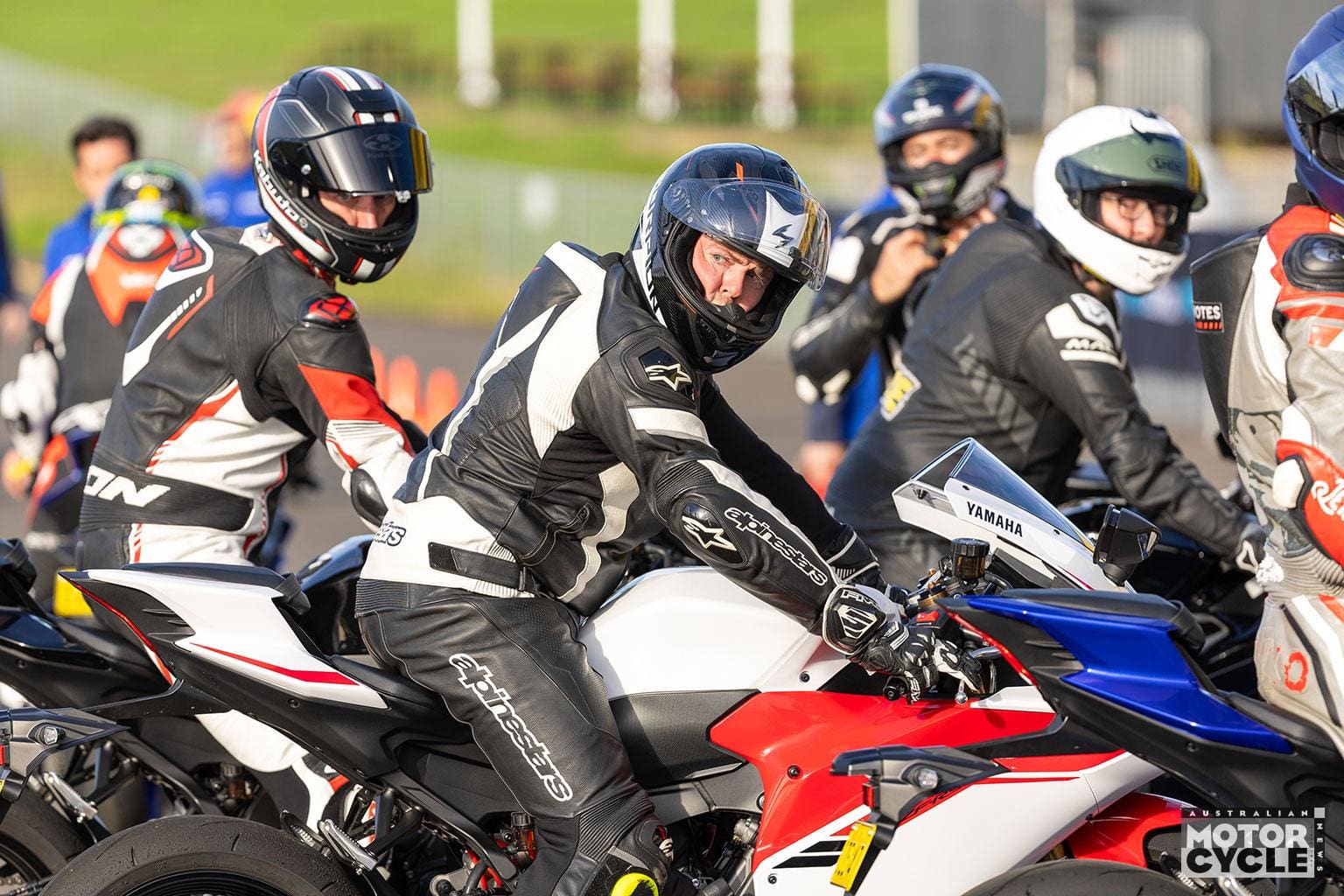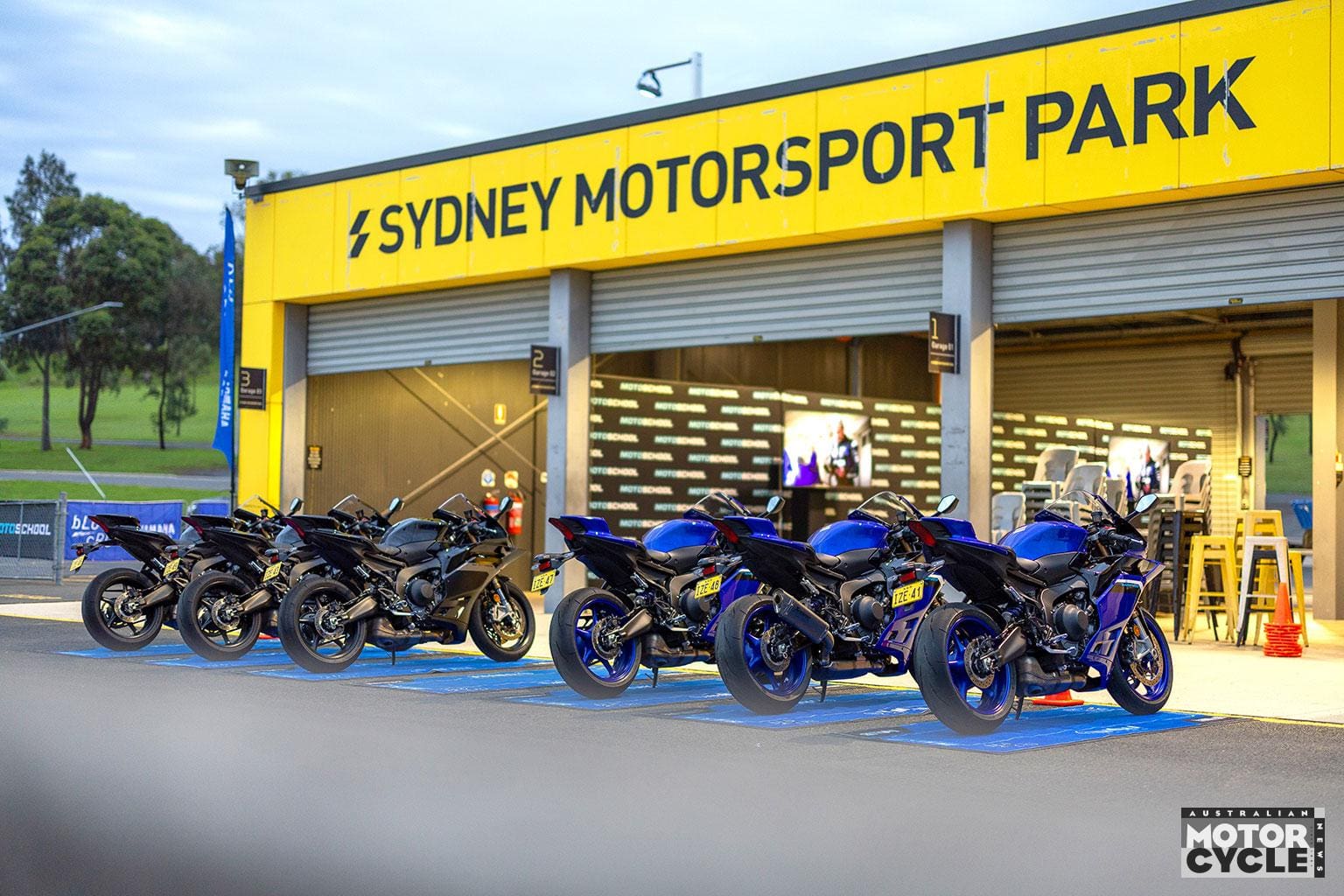 The sun is peeking through the clouds, birds are tweeting and the coffee is hot on a cool morning at Sydney Motorsport Park. The 13-corner, 1.8km layout known as the South Circuit will be our playground. The toys are on race stands and I watch on frothing as they’re given the final once-over by the Yamaha technicians. There are no tyre warmers, just brand-new Bridgestone RS11 rubber to warm up and scrub in. After a quick briefing it’s time to get the helmets on and head out on track.