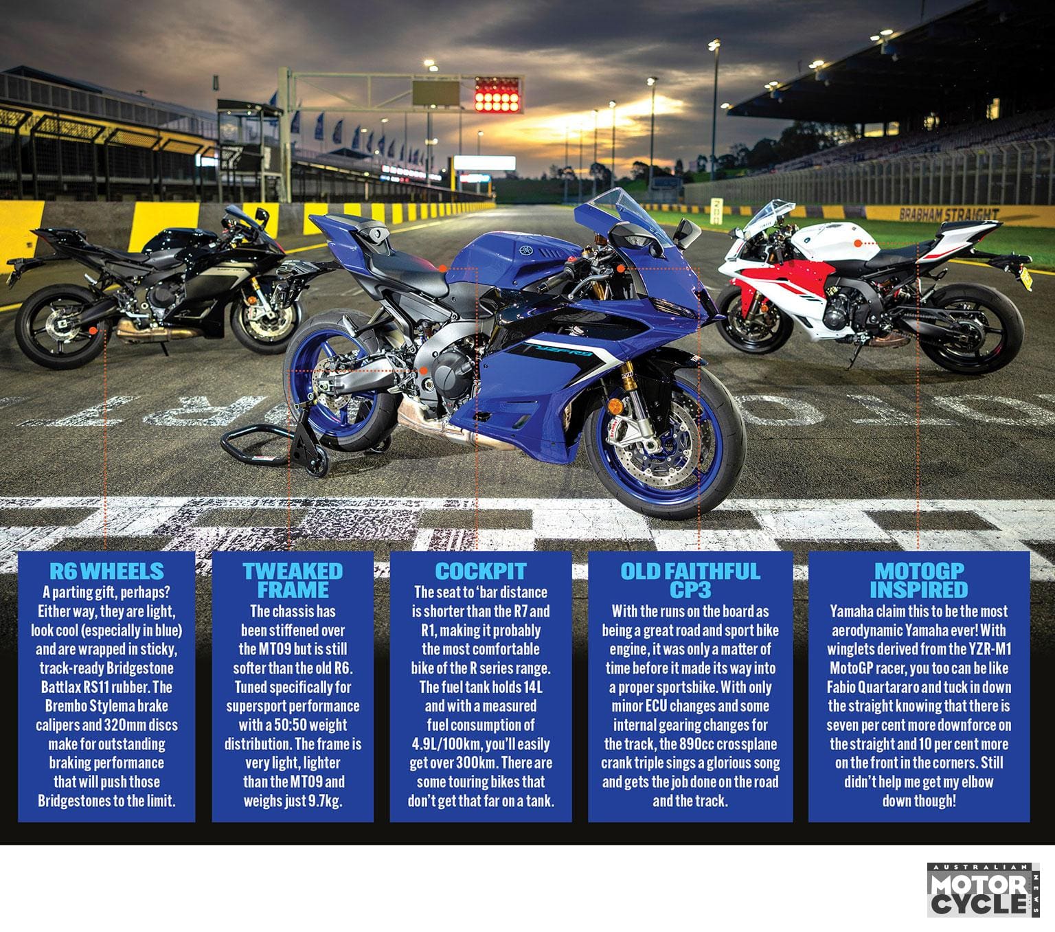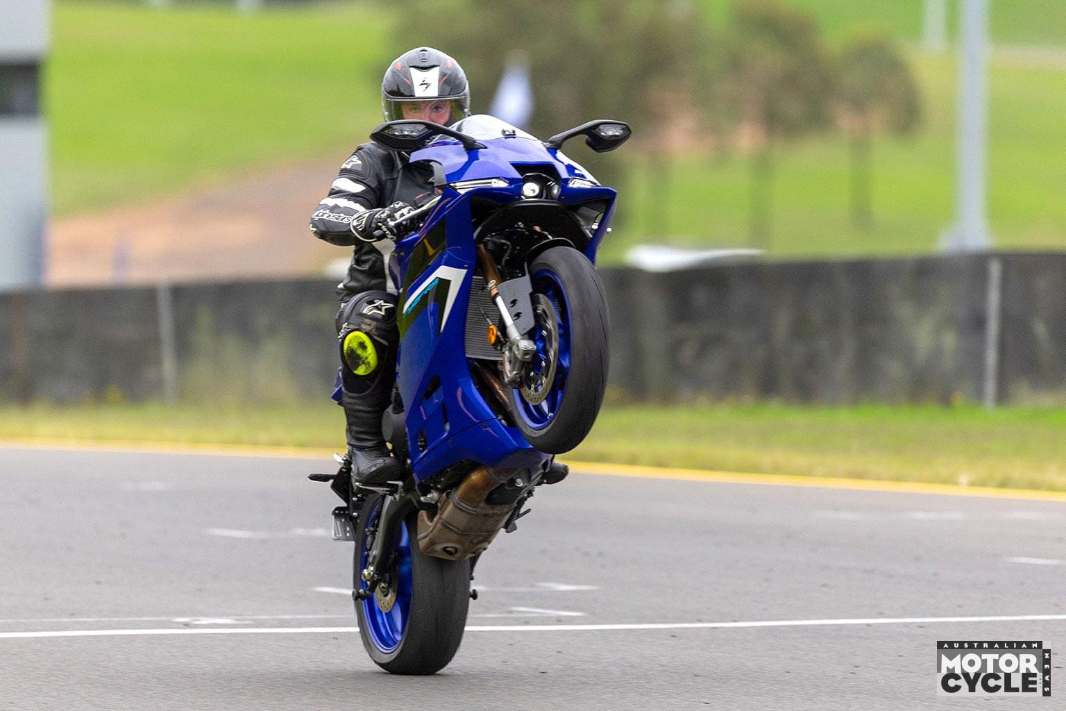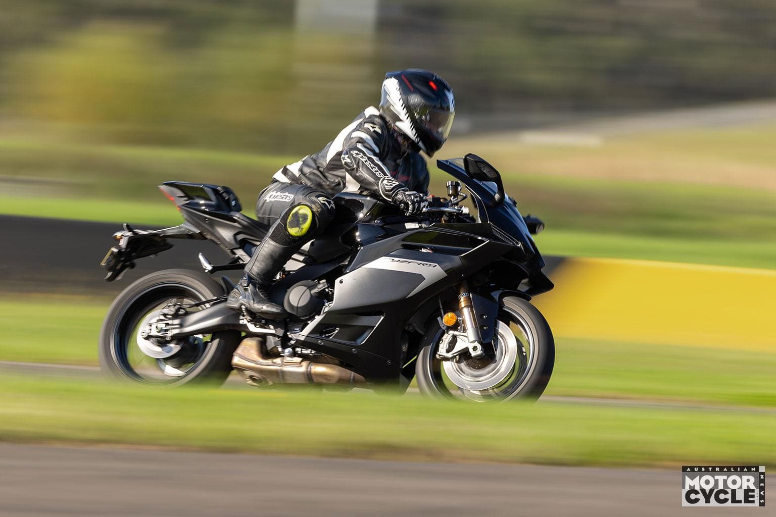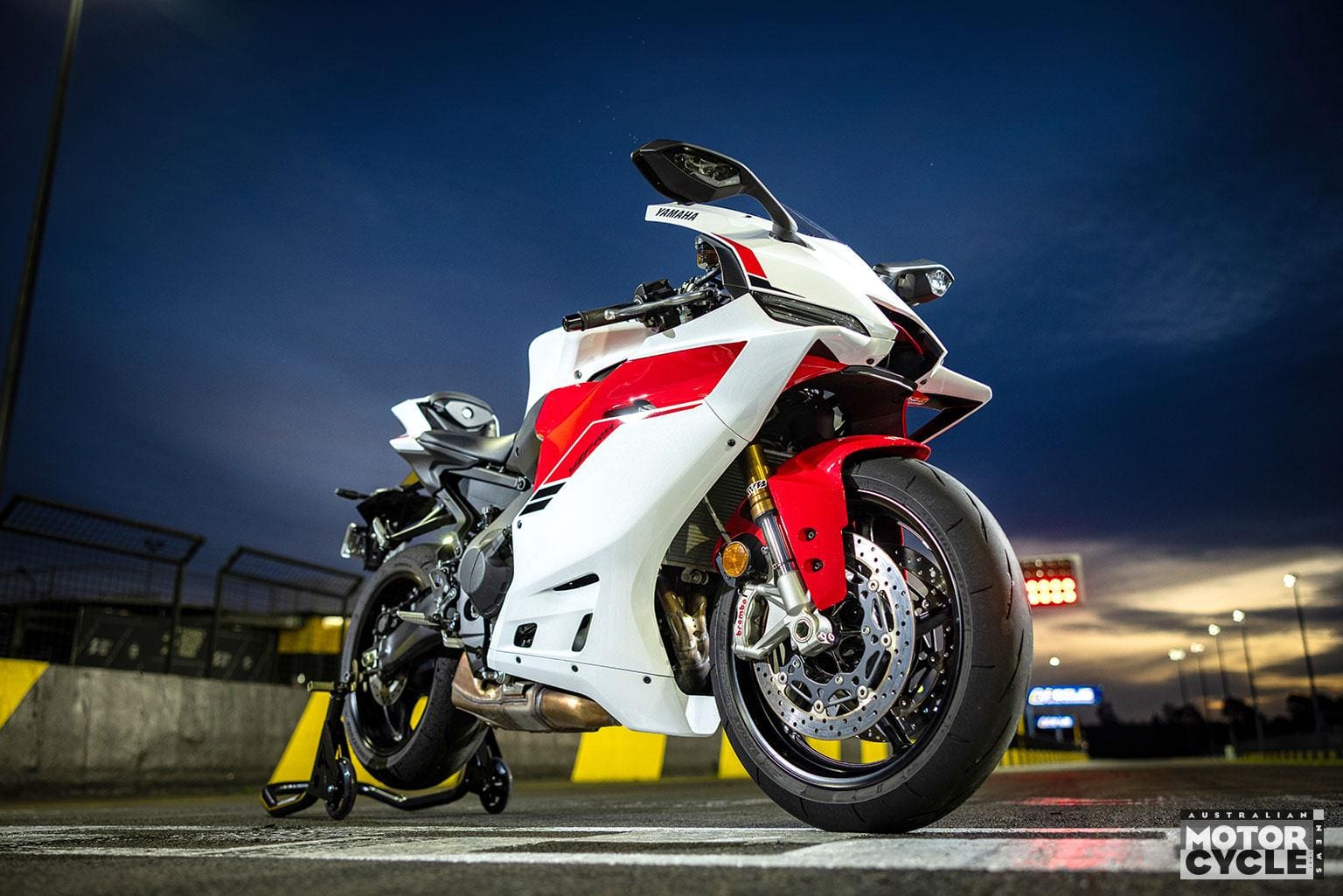 The sun is peeking through the clouds, birds are tweeting and the coffee is hot on a cool morning at Sydney Motorsport Park. The 13-corner, 1.8km layout known as the South Circuit will be our playground. The toys are on race stands and I watch on frothing as they’re given the final once-over by the Yamaha technicians. There are no tyre warmers, just brand-new Bridgestone RS11 rubber to warm up and scrub in. After a quick briefing it’s time to get the helmets on and head out on track.