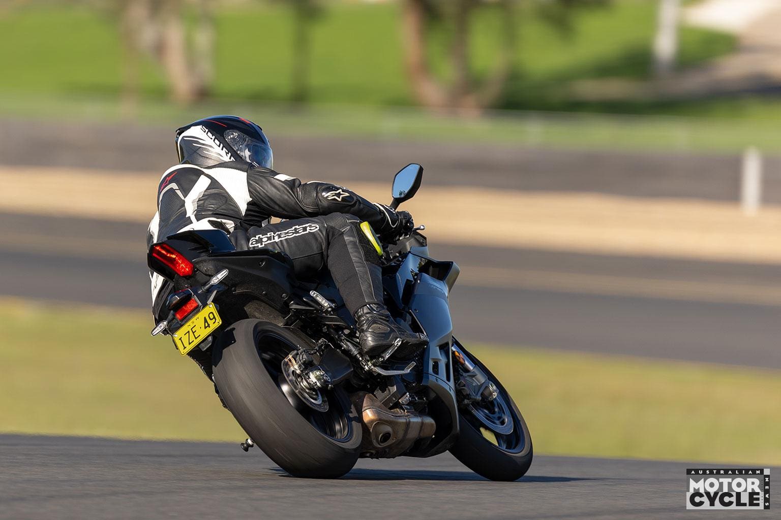 As I’m getting up to speed, I find myself changing back to second gear while entering the 90-degree turns and loving the feel and sound of the engine braking – but then I’m hitting the rev limiter very early on corner exit. Making all these gear changes is fine for the bike as the quickshifter is flawless in its execution, but my leg is getting sore from all the up and down.